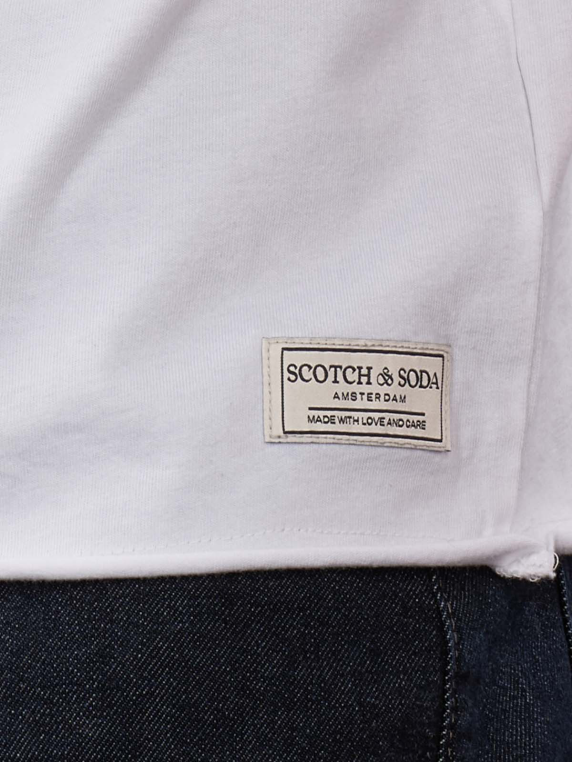 Le T-shirt Scotch & Soda Relaxed Fit Raw Edged en blanc offre un col rond décontracté et une coupe relaxée. Fabriqué en 100 % coton biologique, il assure un grand confort et une respirabilité. Il convient à diverses activités de loisirs et se combine de manière polyvalente. Facile d'entretien à 30 °C en cycle normal, c'est un choix pratique pour l'homme moderne.
