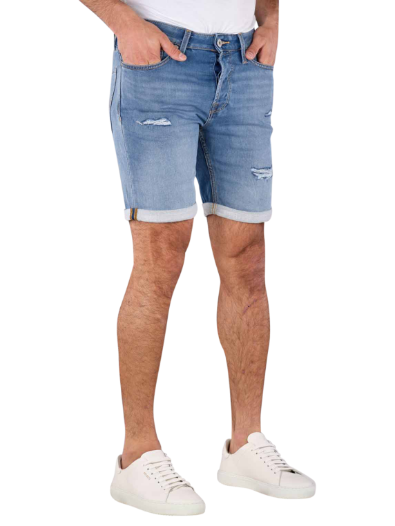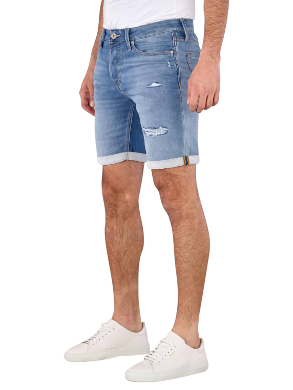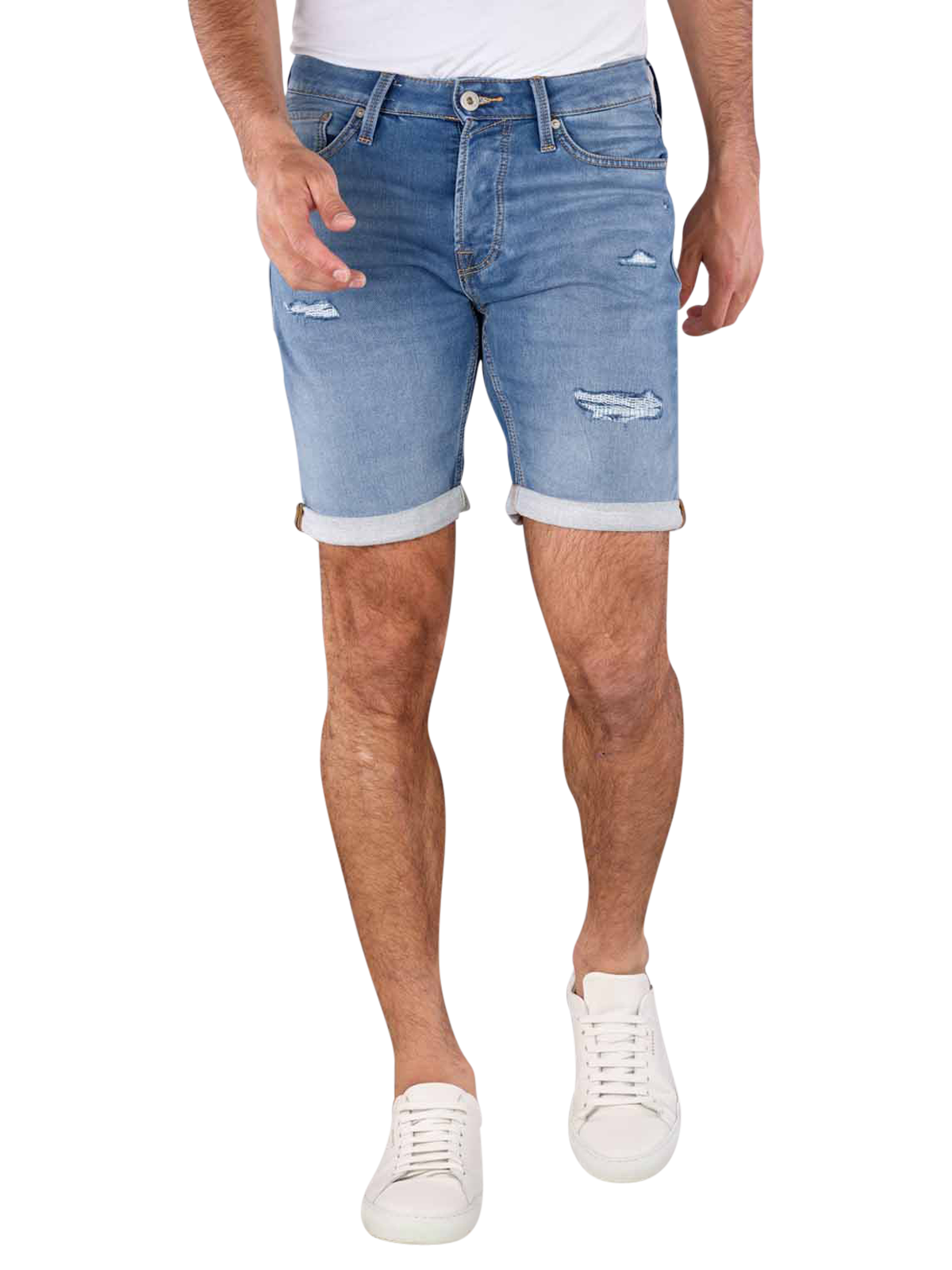 Le short Jack & Jones Rick Icon de coupe régulière est en denim bleu et combine celui-ci avec des plis d'assise optiques, un look usé stylé et un revers de jambe moderne. Il est composé d'un mélange de coton élastique qui assure une tenue confortable même lorsqu'il est porté longtemps. Un autre avantage de ce short confortable pour hommes avec une patte de boutonnage moderne est qu'il se nettoie facilement à 40 °C et qu'il peut être séché.