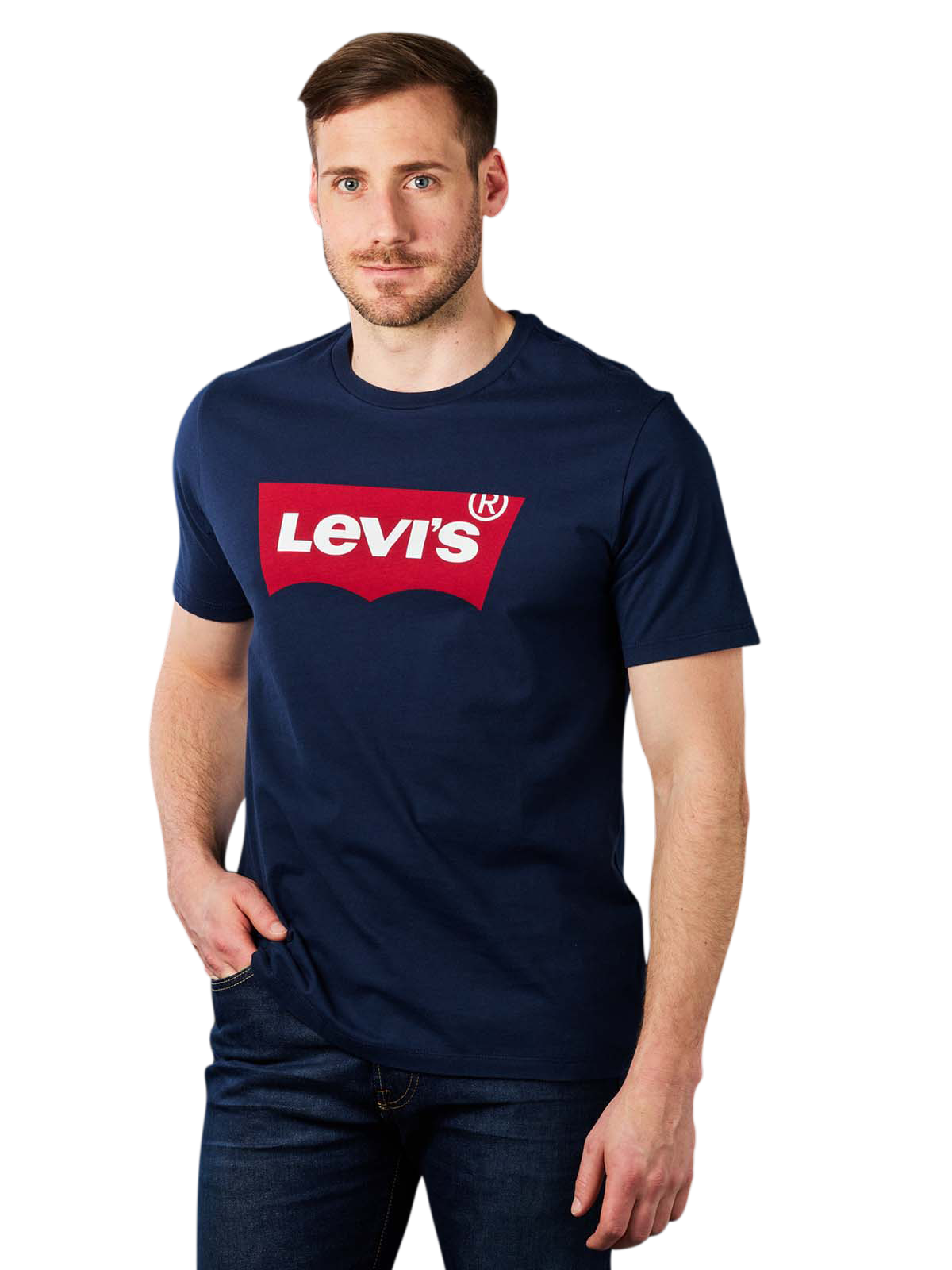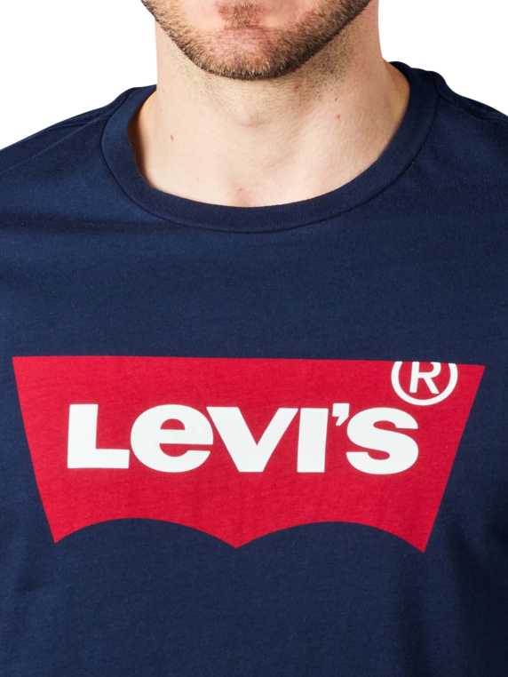 Le T-shirt Crew Neck Short Sleeve de Levi's, d'un bleu foncé profond, complète parfaitement le look décontracté. Un grand logo rouge orne la poitrine. La coupe est normale et l'encolure est ronde. Il est composé à 100 % de coton. Il peut être nettoyé à 30 degrés. Il peut être mis au sèche-linge à basse température.