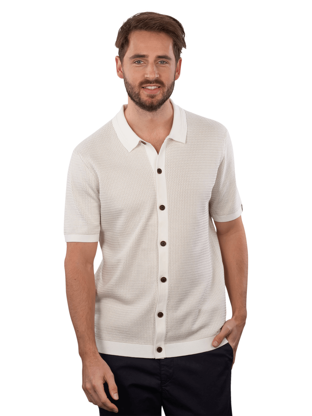 Le Vanguard Cardigan Short Sleeve Button en couleur Ecru offre une coupe légère et respirante pour les hommes. Sans capuche et avec une fermeture à boutons classique, il est parfait pour des tenues en couches. Le cardigan est facile d'entretien et peut être lavé à 30°C en cycle délicat. Associez-le à des T-shirts ou des chemises pour un look décontracté.