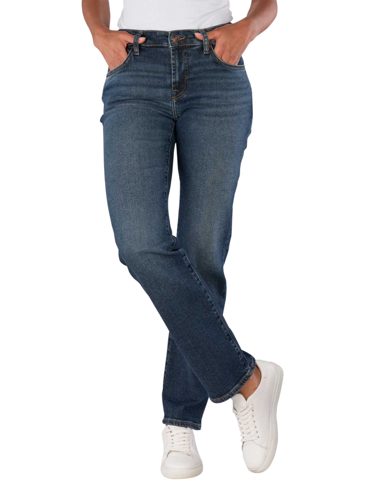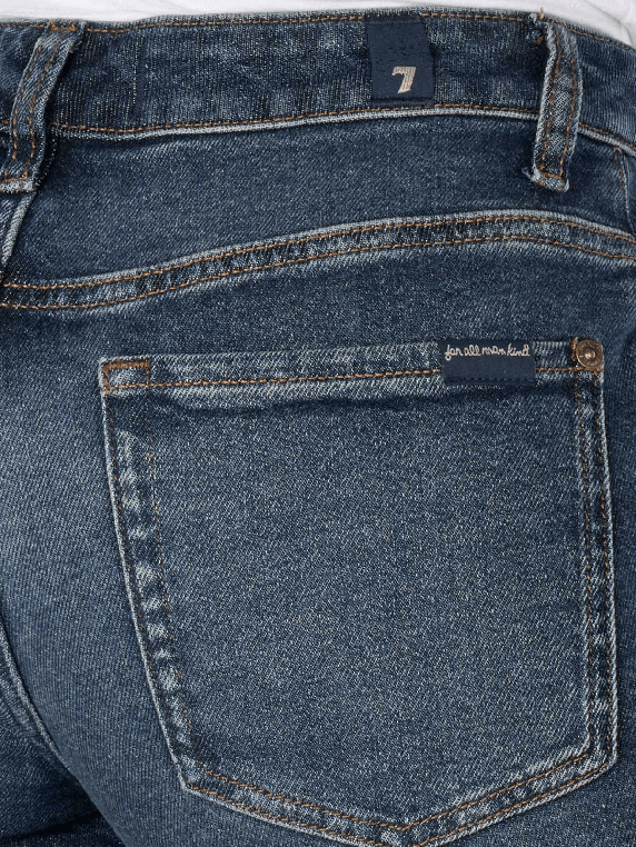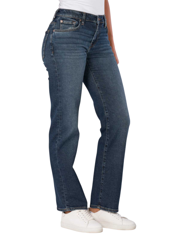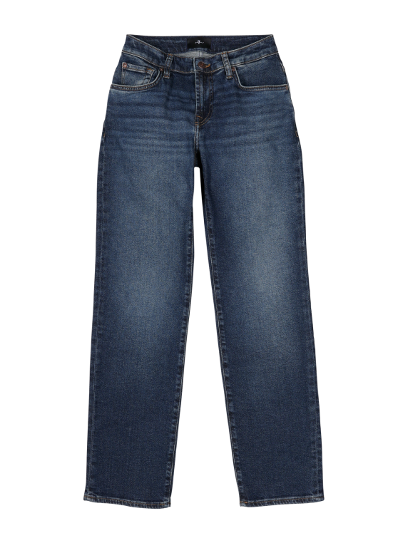 Découvrez les jeans 7 For All Mankind Calie à coupe droite pour femmes. Ces jeans stylés dans un ton bleu moyennement foncé offrent une coupe de jambe droite confortable et une hauteur de taille moyenne. Ils sont fabriqués dans un mélange de matières de haute qualité avec une part de stretch qui assure un confort optimal. Le design cinq poches et la fermeture éclair pratique confèrent aux jeans une élégance intemporelle. Idéal pour le quotidien et combinable de multiples façons, ces jeans sont un must-have pour toute garde-robe.