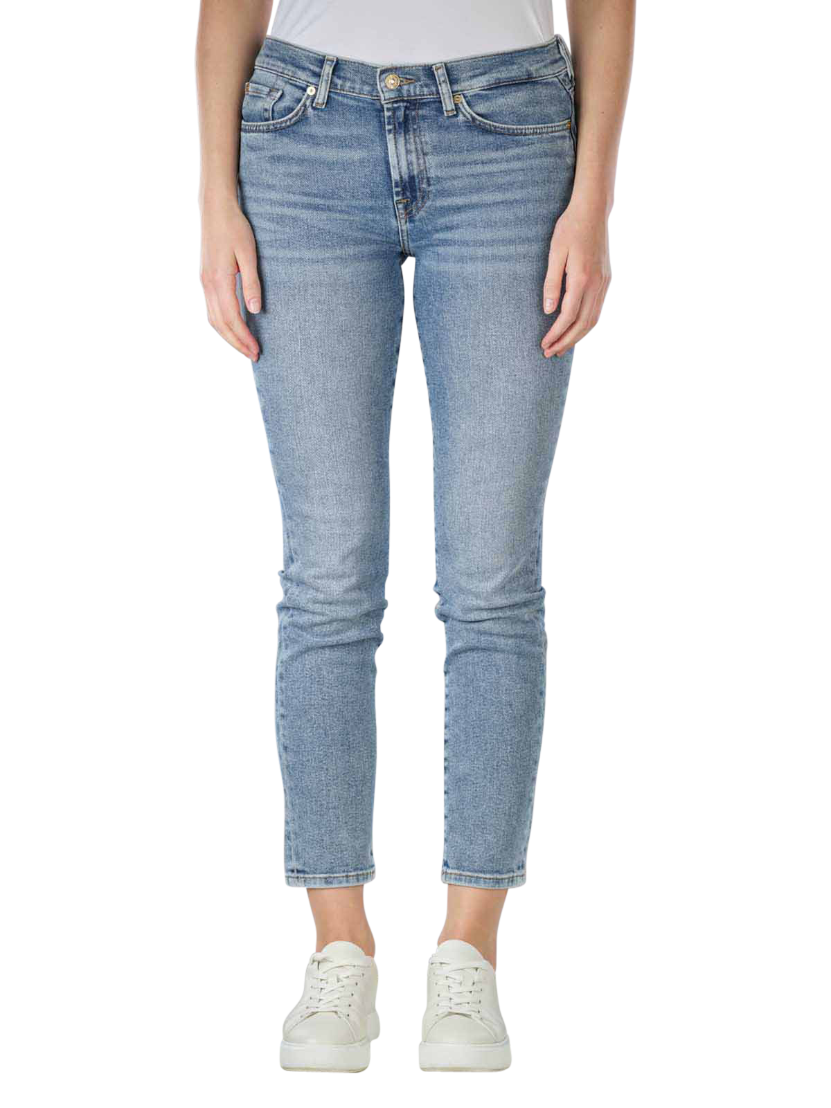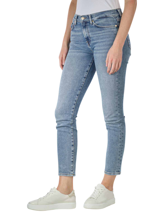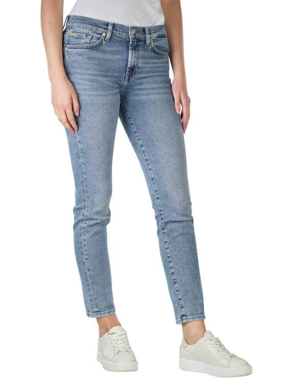 Le jeans 7 For All Mankind Roxanne Luxe Slim Fit dans la couleur Mid Blue séduit au premier coup d'il par son look moderne avec un délavage usé et des plis d'assise optiques. Fabriqué à partir d'un mélange de coton, le jean pour femmes avec une hauteur de taille normale offre un grand confort, tandis que la jambe étroite souligne la silhouette. De plus, le jeans est facile d'entretien et lavable en machine à 30 °C.