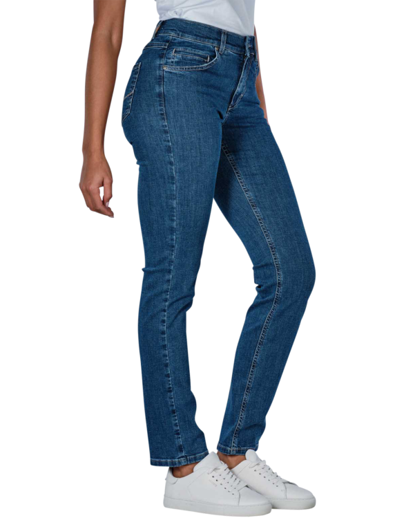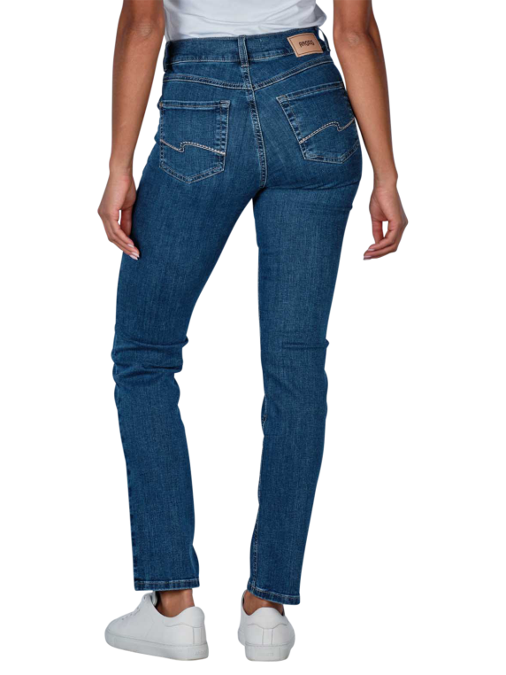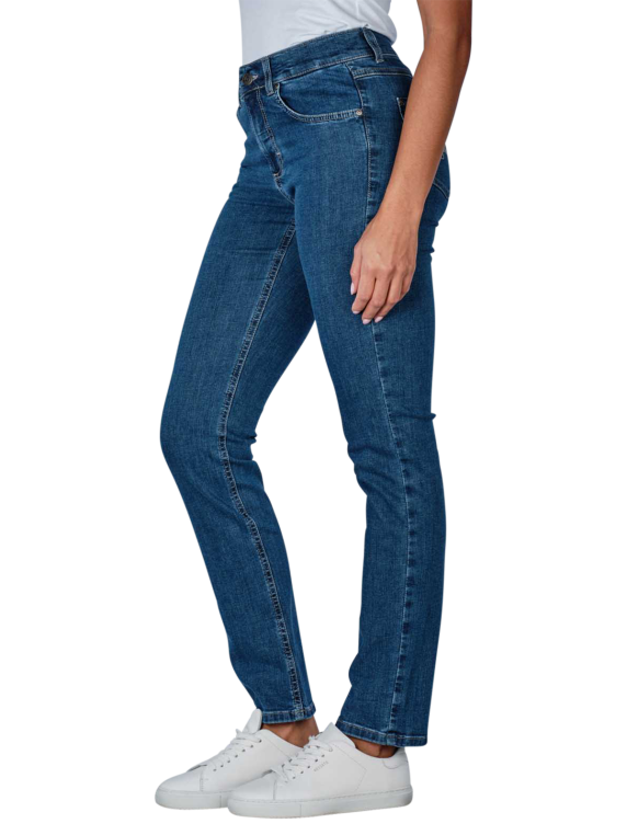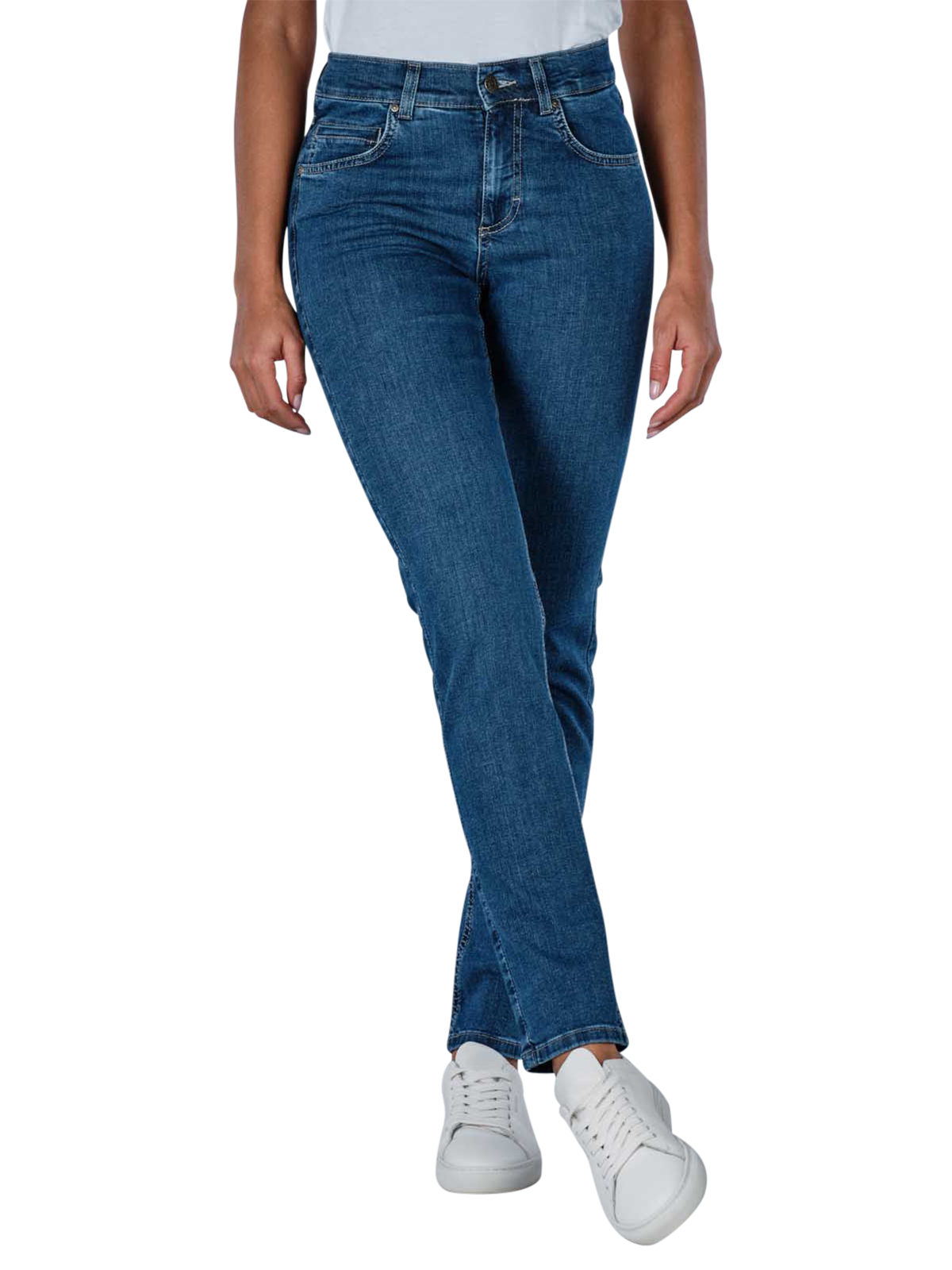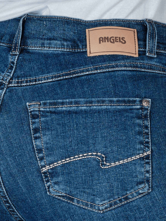 Le jeans Cici d'Angels est taillé dans une coupe straight fit : La coupe des jambes et des cuisses est droite et la taille est haute. Le mélange de matières 92 % coton, 6 % polyester et 2 % élasthanne rend ce modèle confortable et facile d'entretien. Le procédé de Knotwashed avec des nuds en plastique recyclé permet d'économiser de l'eau, de l'énergie, du CO2 et des ressources naturelles. Le jeans à cinq poches est de couleur Mid Blue et possède une fermeture éclair avec bouton.