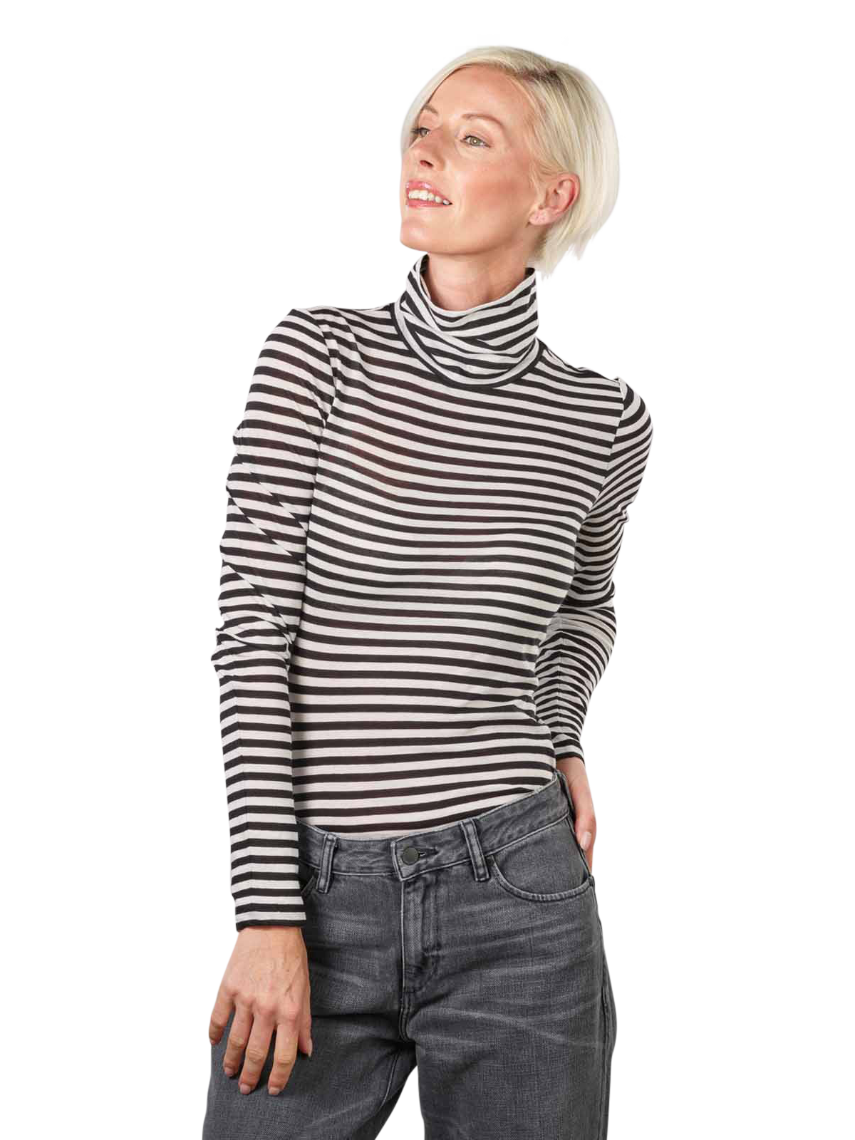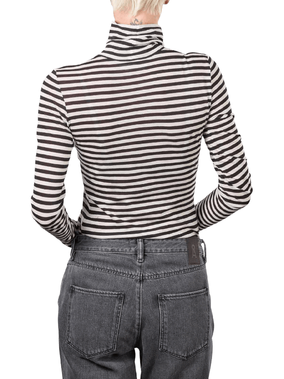 Le pull à col roulé Grazilia de la maison Armedangels est classique, marin et élégant. Le pull à col roulé à manches longues a une coupe féminine agréable qui peut être stylée aussi bien avec des styles décontractés qu'avec un bureau chic et élégant. Le col roulé à rayures longitudinales est un vêtement polyvalent qui doit être un basique dans toute armoire. Pour que ce must-have féminin reste beau longtemps, il doit toujours être lavé en machine douce.