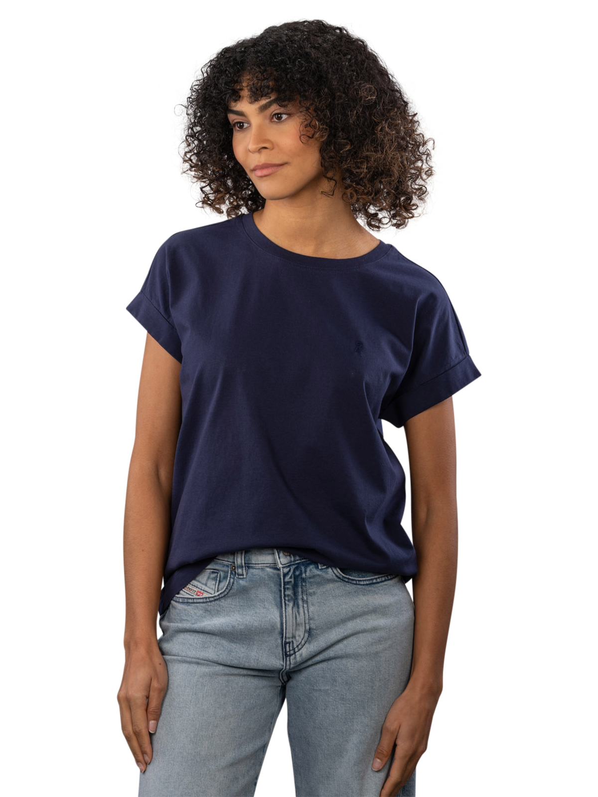 Le T-shirt Armedangels Idaara en Tinted Navy offre un col rond classique et des manches courtes. Fabriqué en 100 % coton bio, il est respectueux de l'environnement et doux pour la peau. La couleur sombre permet des combinaisons polyvalentes avec différentes tenues. Il convient pour des activités de loisirs décontractées ou comme un complément décontracté au quotidien. Facile d'entretien à 30 °C en cycle délicat, il reste durable et conserve sa forme.