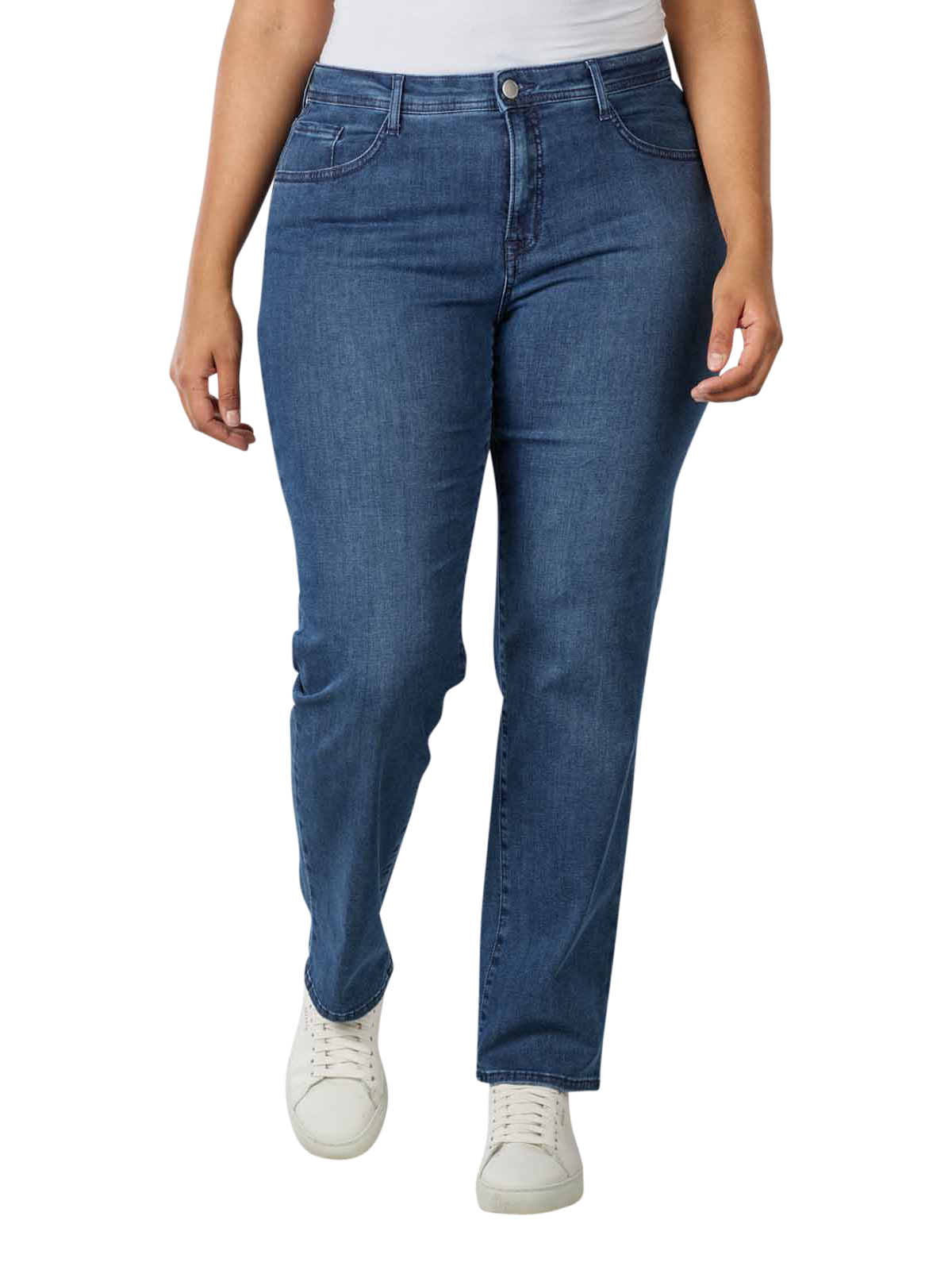 Le jean particulièrement attrayant et classique avec une part de stretch optimale a été créé spécialement pour les courbes des tailles Plus Size. La coupe droite à taille haute du jean cinq poches avec fermeture éclair est synonyme de silhouette flatteuse. Le jeans est issu du programme durable Blue Planet très apprécié.