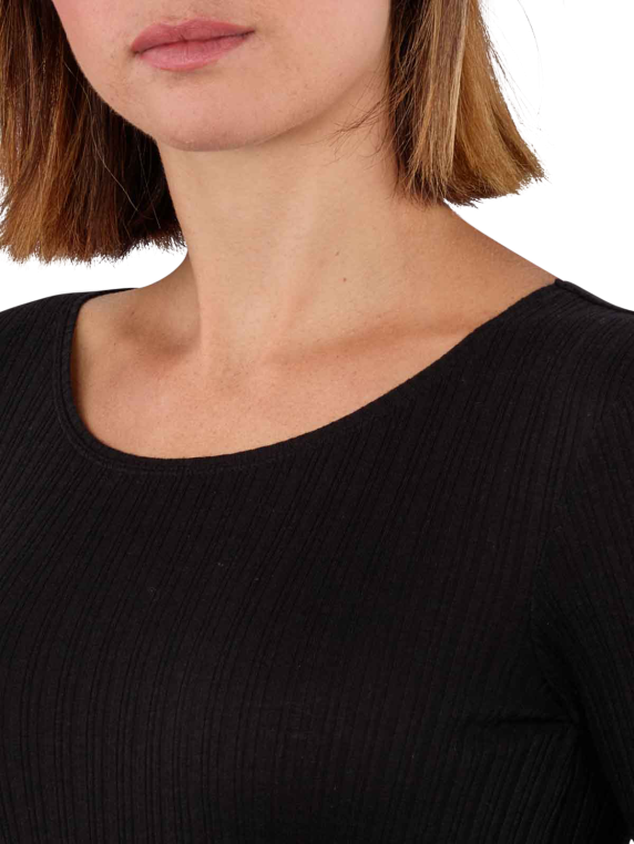 Le t-shirt Drykorn Rib Structure Hejuno est idéal pour les femmes qui recherchent une mode élégante et confortable. Il est noir et possède un col rond. Fabriqué en 50% coton et 50% modal, il offre une sensation de douceur et de confort. Pour l'entretien, le lavage à la main est recommandé, le blanchiment n'est pas autorisé. Parfait pour les looks décontractés et élégants à la fois.