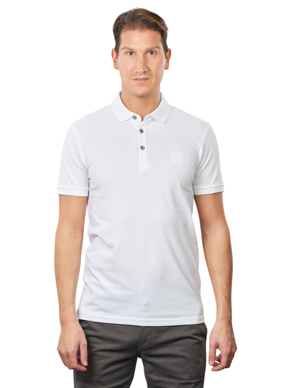 Le polo Boss Orange Short Sleeve Passenger de coupe slim et de couleur blanche est composé d'un mélange de coton et d'élasthanne et s'adapte bien au corps. Grâce à l'élasticité du matériau, le polo est confortable à porter. Un autre point positif est le nettoyage facile à 30 °C en cycle délicat, mais le polo à manches courtes de Hugo Boss ne peut pas être mis au sèche-linge.