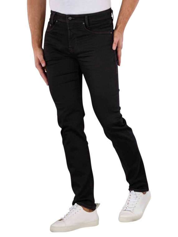 Le jeans Mac Jog'n Slim Straight en Black Black Clean offre une coupe de jambe droite et une hauteur de taille moyenne. Ce jean noir pour hommes se distingue par sa coupe slim et sa part de stretch. Fabriqué à partir de 89% de coton, 9% de polyester et 2% d'élasthanne, il offre une solide épaisseur de tissu standard. Le pantalon cinq poches dispose d'une fermeture à glissière et doit être lavé sur un cycle délicat à 30°C.