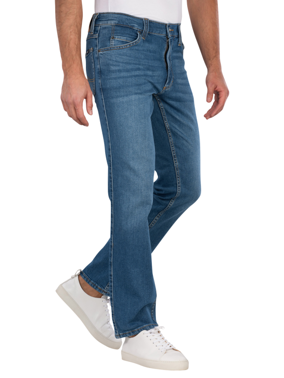 Le jean Mustang Tramper Straight Fit Mid Blue offre une coupe droite et une hauteur de taille moyenne. Il est d'un bleu moyen classique et dispose d'une fermeture éclair pratique. Avec sa part d'élasthanne, il assure liberté de mouvement et confort. Le jean est conçu dans un style cinq poches et convient à diverses activités de loisirs. Facile d'entretien, il peut être lavé à 30°C en cycle normal.
