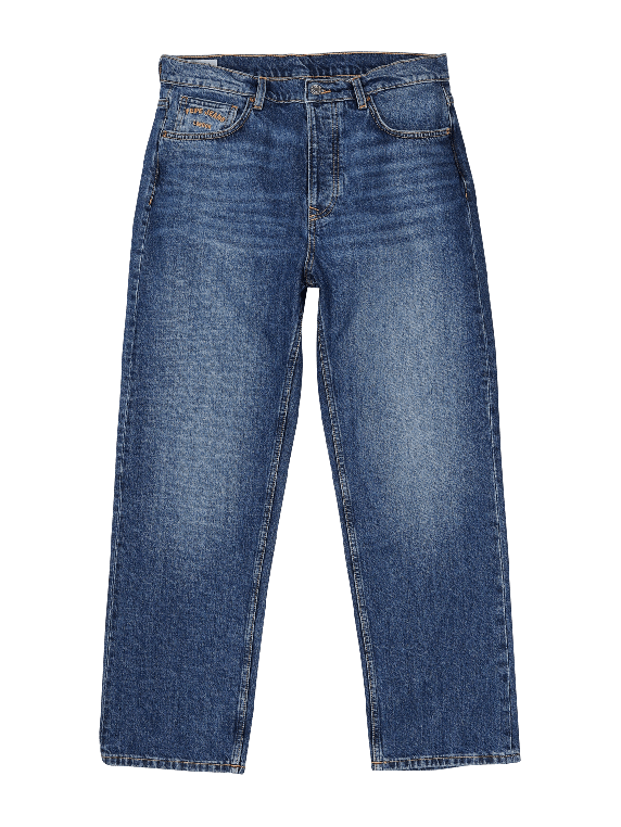 Le Pepe Jeans Bexley Relaxed Fit Mid Blue offre une coupe droite et large avec une taille haute. Ce jean est de couleur bleu moyen et est composé à 100 % de coton sans élasticité. Il dispose d'une construction classique à cinq poches et d'une fermeture à boutons pratique. Le lavage moyen donne un look intemporel qui se marie facilement.