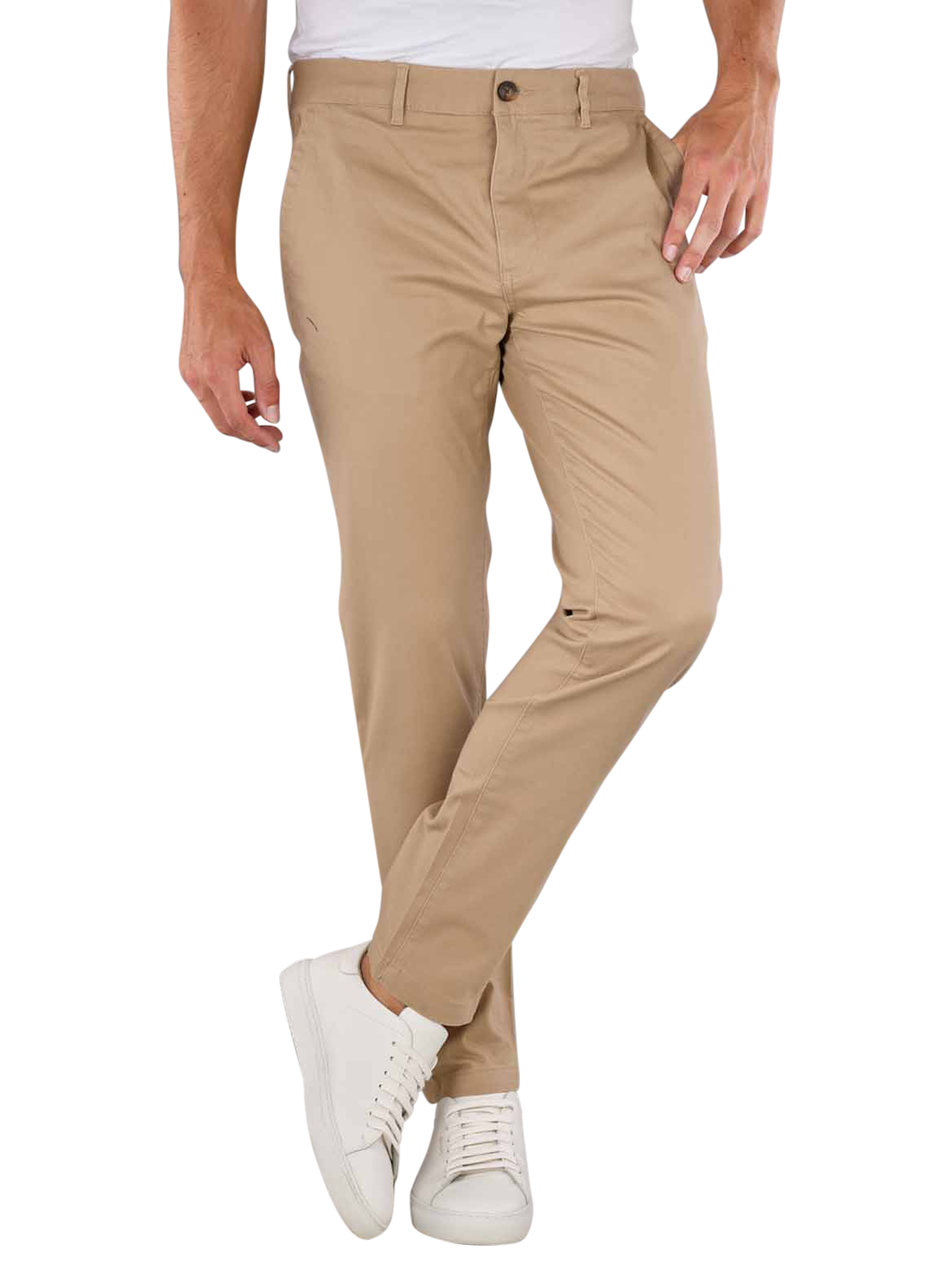 Le Scotch & Soda Mott Chino Super Slim Fit en beige est un pantalon pour homme élégant qui se distingue par sa coupe droite étroite et sa taille mi-haute. Fabriqué à partir de 97% de coton et 3% d'élasthanne, il offre un confort agréable grâce à sa teneur en stretch. Ce pantalon chino est facile d'entretien puisqu'il peut être lavé à 30°C sur un cycle normal. La fermeture à glissière complète le design moderne.