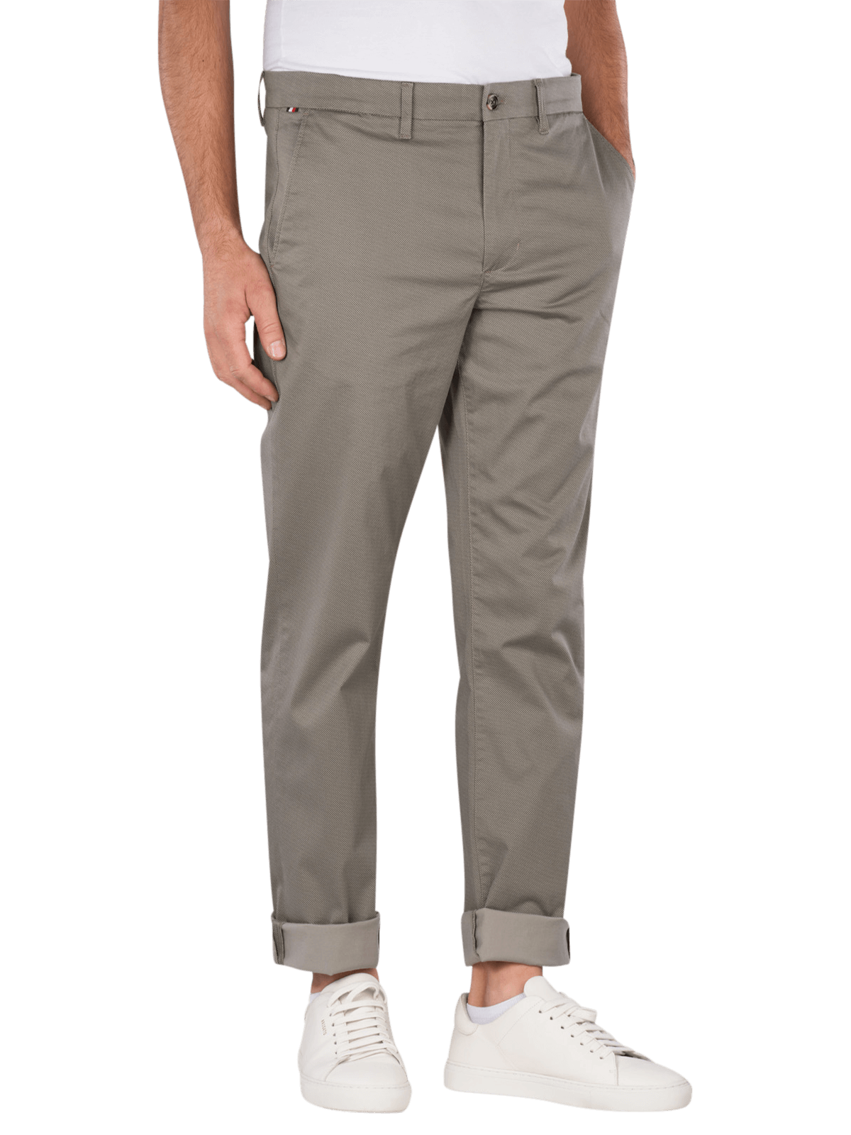 Le Tommy Hilfiger Denton Chino Printed Structure en Hydrogen Grey offre une coupe droite et une hauteur de taille moyenne. Ce pantalon chino pour hommes combine un look moderne avec fonctionnalité. La part d'élasthanne assure une liberté de mouvement, tandis que la fermeture éclair garantit un maintien sûr. Il convient à diverses occasions et se combine de manière polyvalente. Facile d'entretien en cycle délicat à 30°C.