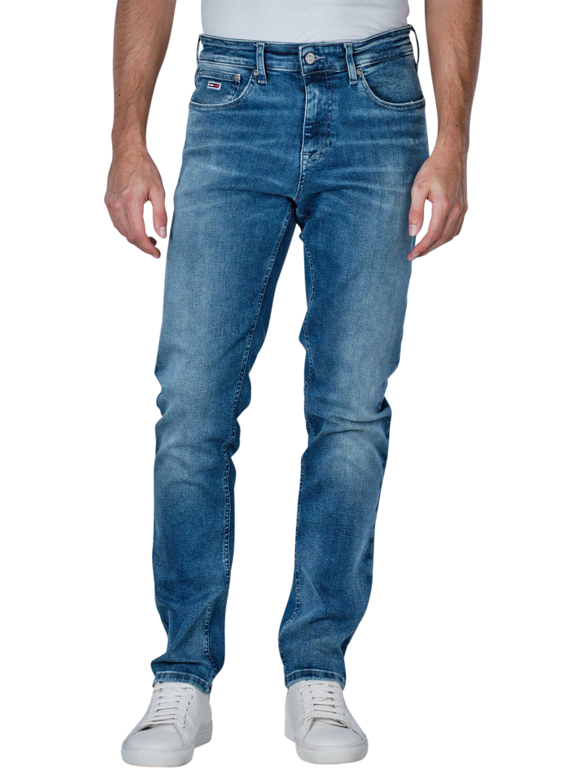 Le Tommy Jeans Scanton Slim Denim se présente dans un bleu moyen et est idéal pour les hommes qui préfèrent les jeans étroits à droits. La coupe slim assure une coupe flatteuse, tandis que la part de stretch offre du confort. Fabriqué à partir de 93% de coton, le jean séduit par son épaisseur de tissu standard et son délavage moyen. Le style classique à cinq poches et fermeture éclair complète le design. Entretien facile à 30°C sur un cycle de lavage normal.