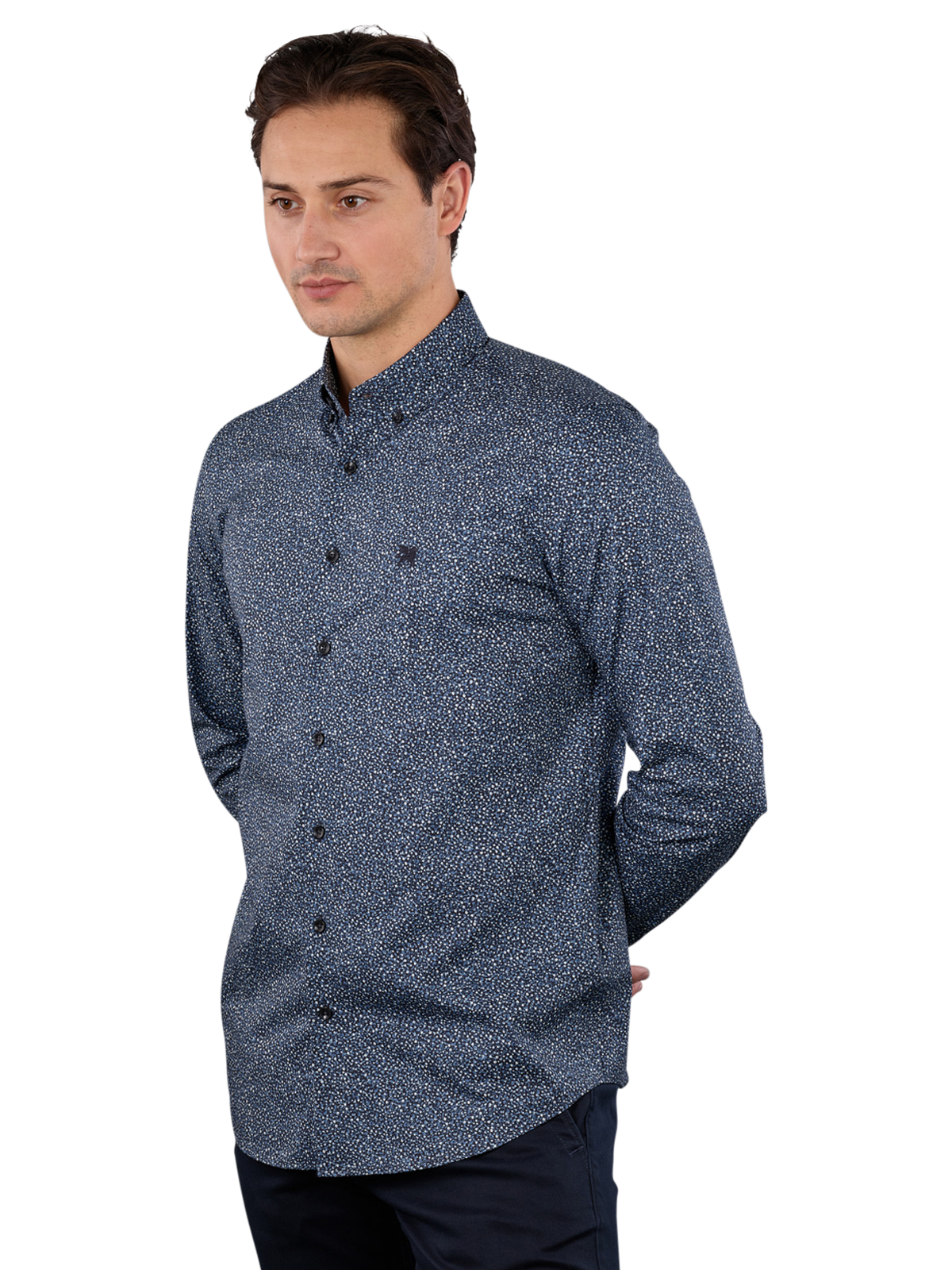 La chemise à manches longues Vanguard Print On Poplin en Blue Indigo est une chemise élégante pour homme qui se distingue par sa couleur bleu foncé et son col boutonné. Fabriquée en 97% de coton et 3% d'élasthanne, elle offre un confort agréable. Idéale pour un look décontracté, elle s'entretient à 30°C sur un cycle de lavage normal. Cette chemise est classée dans la catégorie des chemises / chemisiers et ne doit pas être blanchie afin de préserver sa qualité.