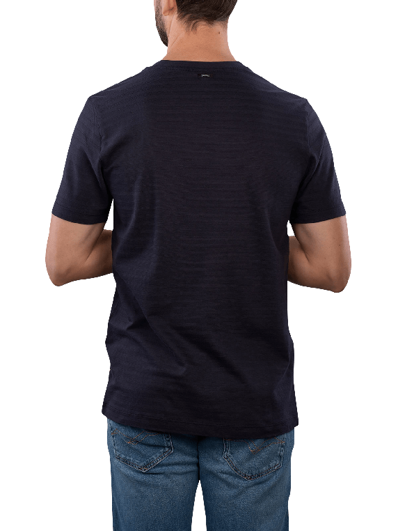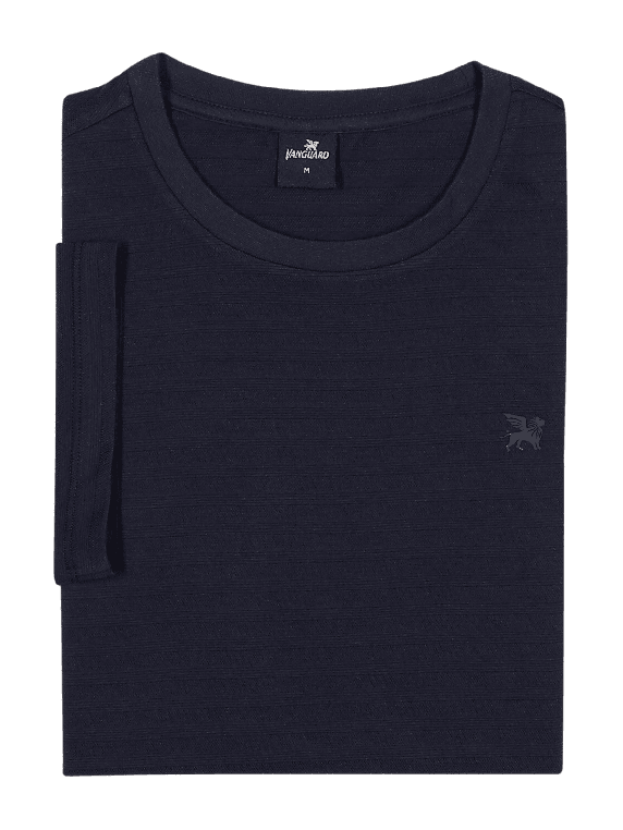 Le T-shirt Vanguard Round Neck Jersey Structure en bleu foncé offre un col rond classique et une coupe confortable. Fabriqué à partir de matériaux recyclés, il combine 65 % de coton avec 35 % de polyester pour un confort agréable. Il convient aux activités de loisirs et peut être combiné de manière polyvalente. Facile d'entretien en cycle délicat à 30 °C, c'est un choix pratique pour les hommes soucieux de l'environnement.