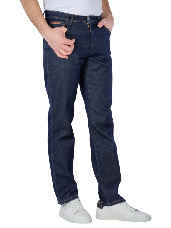 Découvrez le jeans Texas Slim Fit de Wrangler dans une couleur élégante Moonlight Rinse. Ce jean bleu foncé offre une coupe de jambe droite et une taille moyennement haute, idéale pour l'homme moderne. Fabriqué à partir d'un mélange de haute qualité de 56% de coton, 25% de polyester, 13% de lyocell et 5% d'élastomultiest, il garantit confort et liberté de mouvement grâce à sa teneur en stretch. Le design à cinq poches et la fermeture éclair pratique confèrent au jeans un look décontracté mais stylé. Parfait en toute occasion!