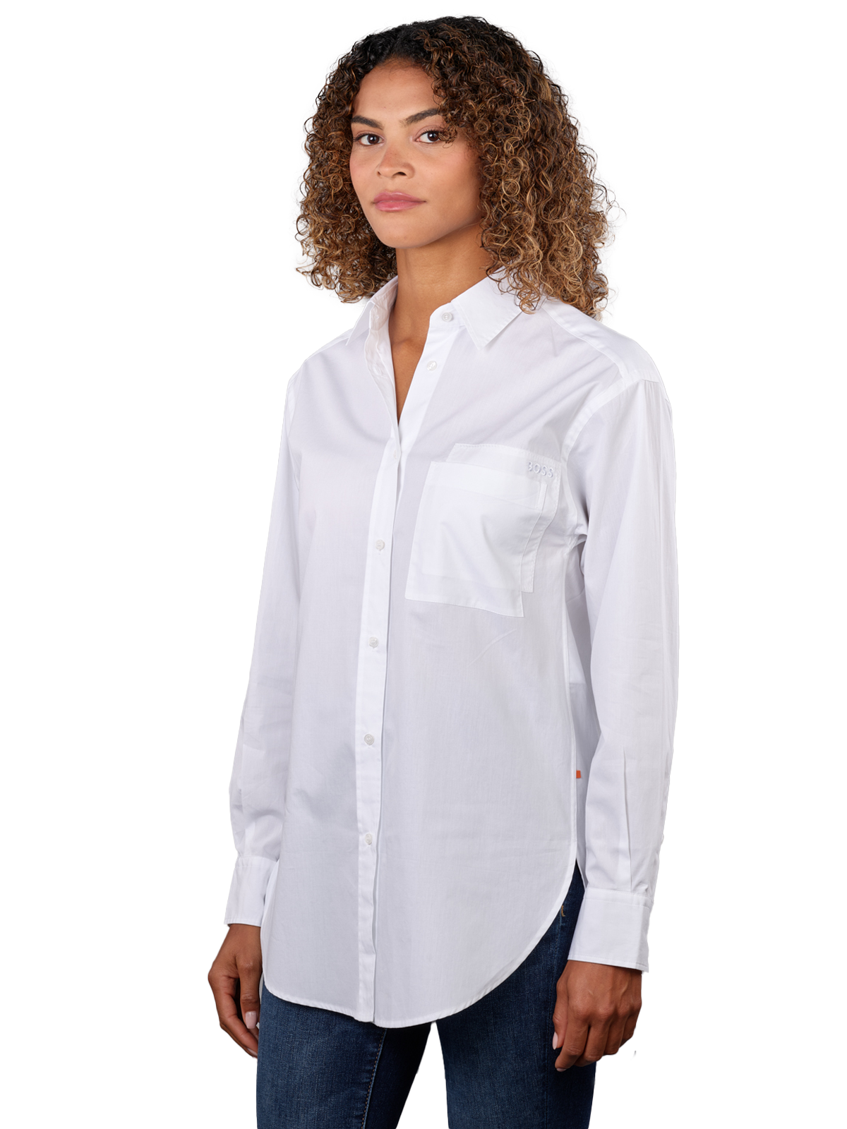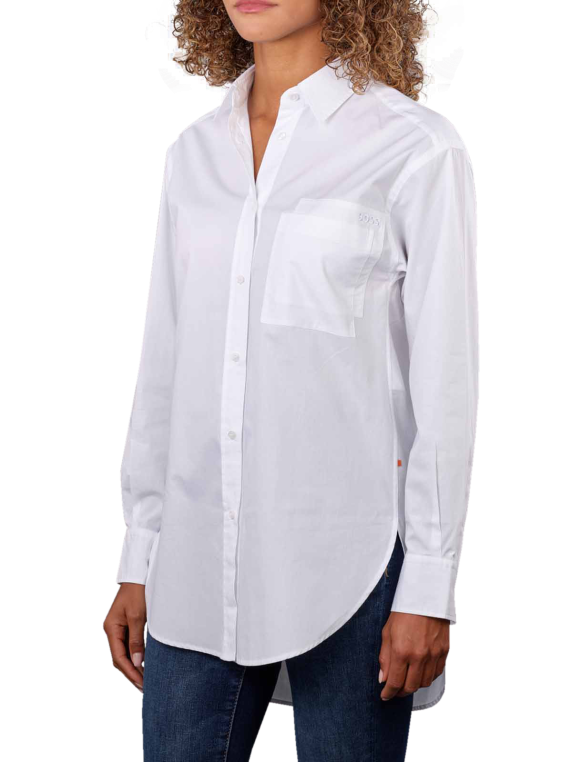 Die Boss Orange Bostucci Long Blouse in Weiss ist perfekt für Frauen, die stilvolle Hemden und Blusen suchen. Mit einem klassischen Hemdkragen und gefertigt aus 100% Baumwolle bietet sie sowohl Komfort als auch Eleganz. Pflegeleicht bei 30 Grad im Normalwaschgang, ideal für den täglichen Gebrauch. Ein hochwertiges, modisches Stück aus der Better Boss Kollektion, das Funktionalität und Stil vereint.