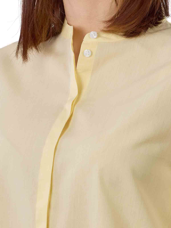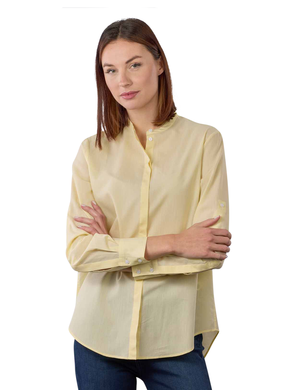Die leichte Boss Orange Long Sleeve Befelize Blouse besteht zu 60 % aus Baumwolle und zu 40 % aus Lyocell. Verschlossen wird die ganz leicht transparente Bluse mit einer verdeckte Knopfleiste, die in einem kleinen Stehkragen endet. Die langen Ärmel enden in breiten Manschetten. Knöpfe auf den Ärmeln ermöglichen das Aufkrempeln der Ärmel. Versehen mit einer leichten Struktur ist die Bluse, die von Hand gewaschen werden muss, herrlich griffig.