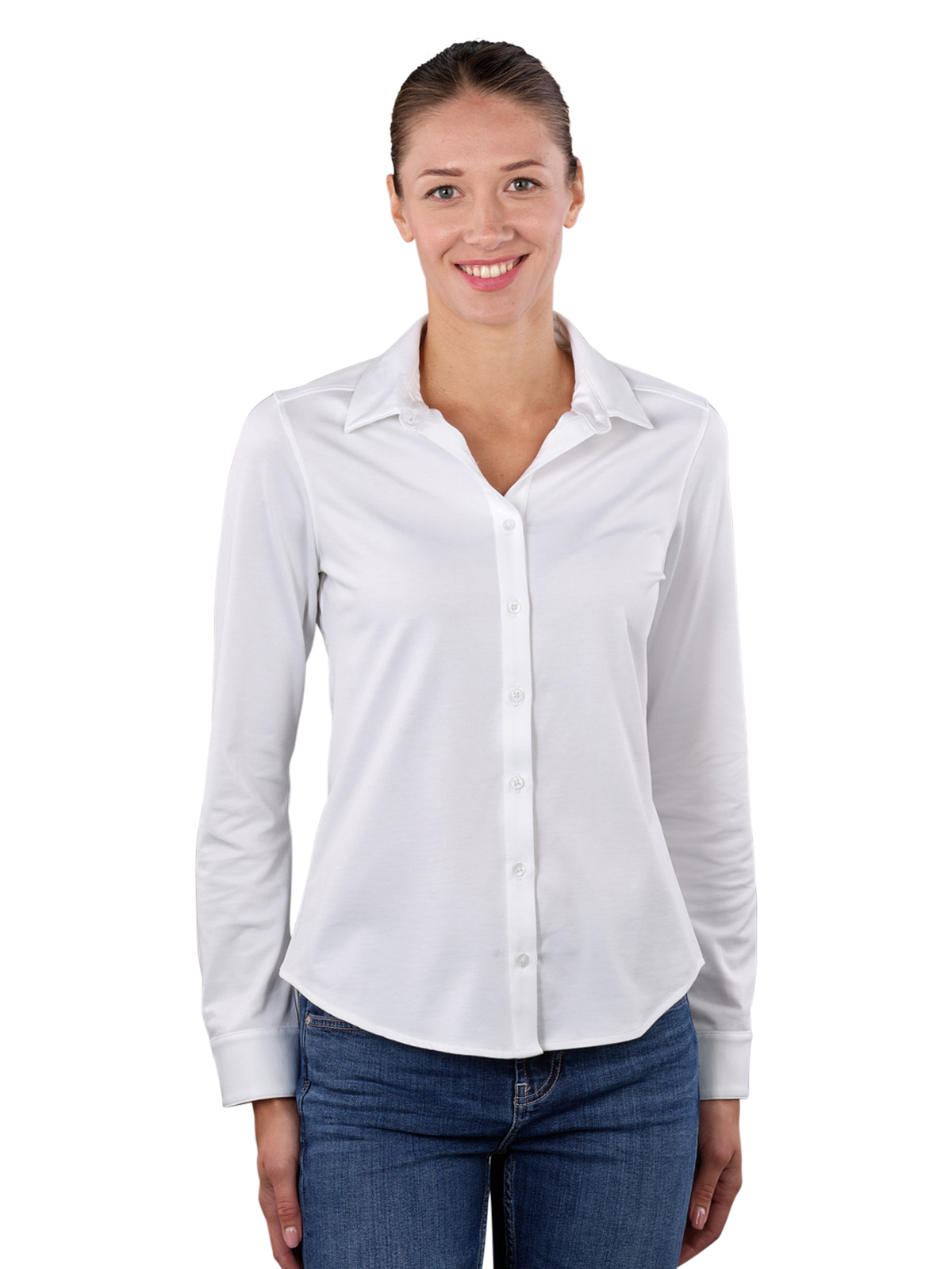 Die Thylie Laurel Blouse eignet sich ideal für Frauen, die stilvolle Eleganz suchen. Dieses langärmlige Hemd in klassischem Weiss überzeugt durch seinen hemdenartigen Kragen und praktische Knopfleiste. Hergestellt aus 56% Baumwolle, 40% Polyester und 4% Elasthan, bietet es optimalen Tragekomfort und eine langlebige Passform. Pflegeleicht bei 40¬#x221E;C im Normalwaschgang, darf die Bluse nicht gebleicht werden, wodurch sie ihre strahlende Farbfrische behält. Perfekt kombinierbar in der Kategorie Hemden und Blusen.