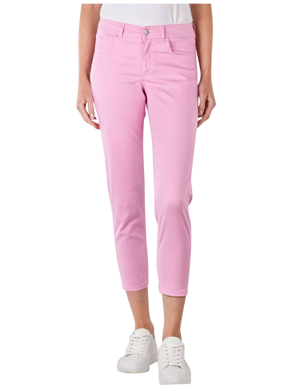 Die Angels Cotton Sportiv Ornella Pant Slim Fit Damenjeans in der Farbe Raspberry Ice Cream besticht auf Anhieb mit einer sommerlichen Farbe und einer engen Passform, die die weibliche Silhouette optimal zur Geltung bring. Dank mittelhohem Bund und dünnem Material mit Stretch-Anteil bietet die 7/8-Jeans trotz eng geschnittenen Beinen einen komfortablen Sitz und viel Bewegungsfreiheit. Waschbar bei 30 °C ist sie ausserdem pflegeleicht.