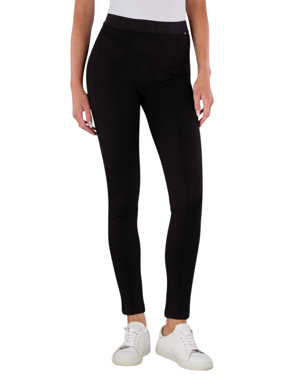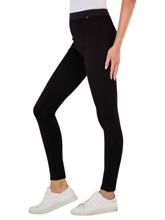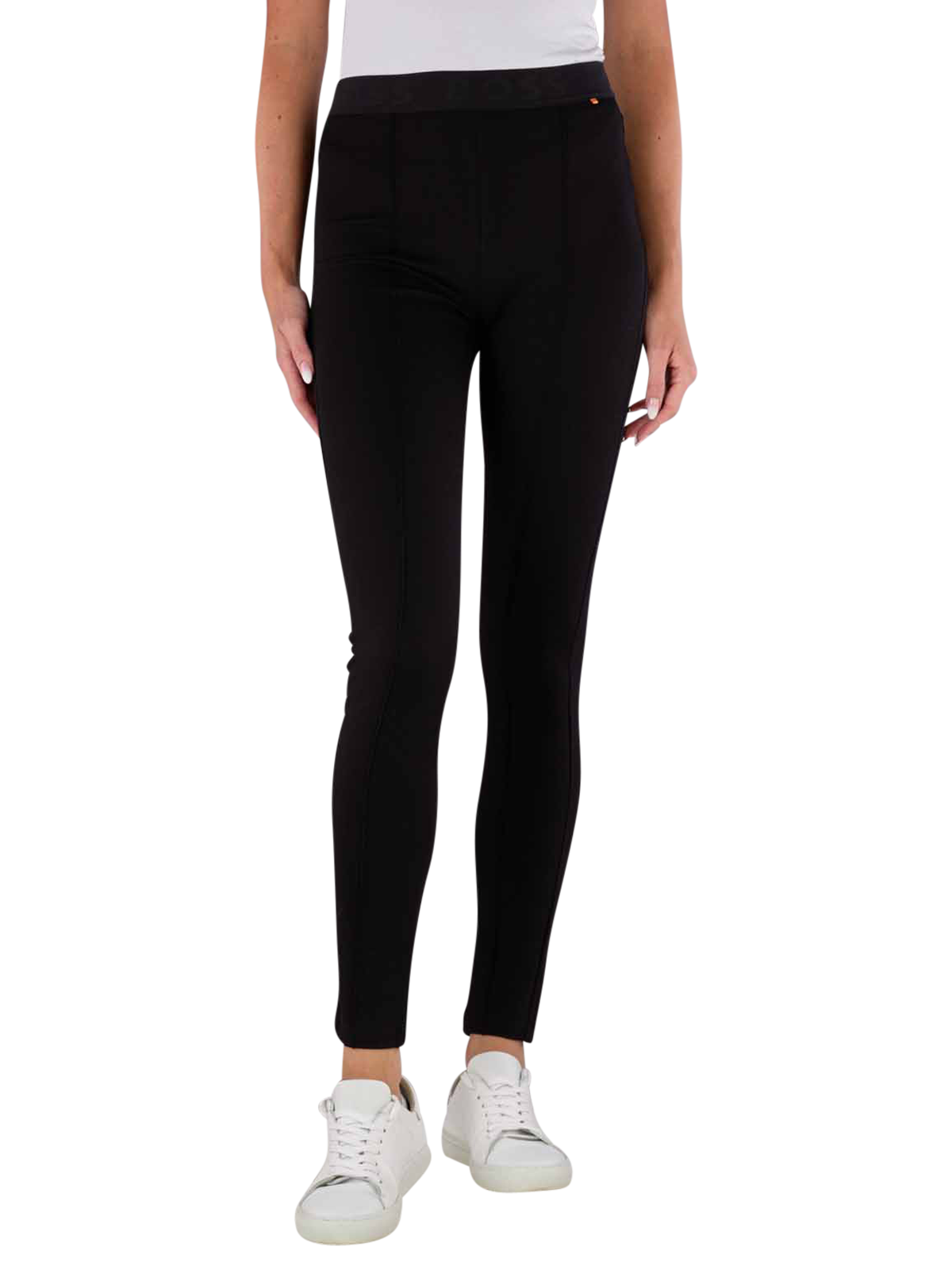Die Boss Orange C-Estretch Pant Leggings in Schwarz bieten Frauen eine eng anliegende Passform mit mittlerer bis hoher Bundhöhe. Die Hosen bestehen aus 80% Baumwolle, 16% Polyamid und 4% Elasthan und sind mit Stretchanteil. Ein Gummizug dient als Verschluss. Diese Leggings sind ideal für den Alltag und sollten im Spezialschonwaschgang bei 30°C gewaschen werden. Sie sind nicht zum Bleichen geeignet und haben eine standardmäßige Stoffdicke.