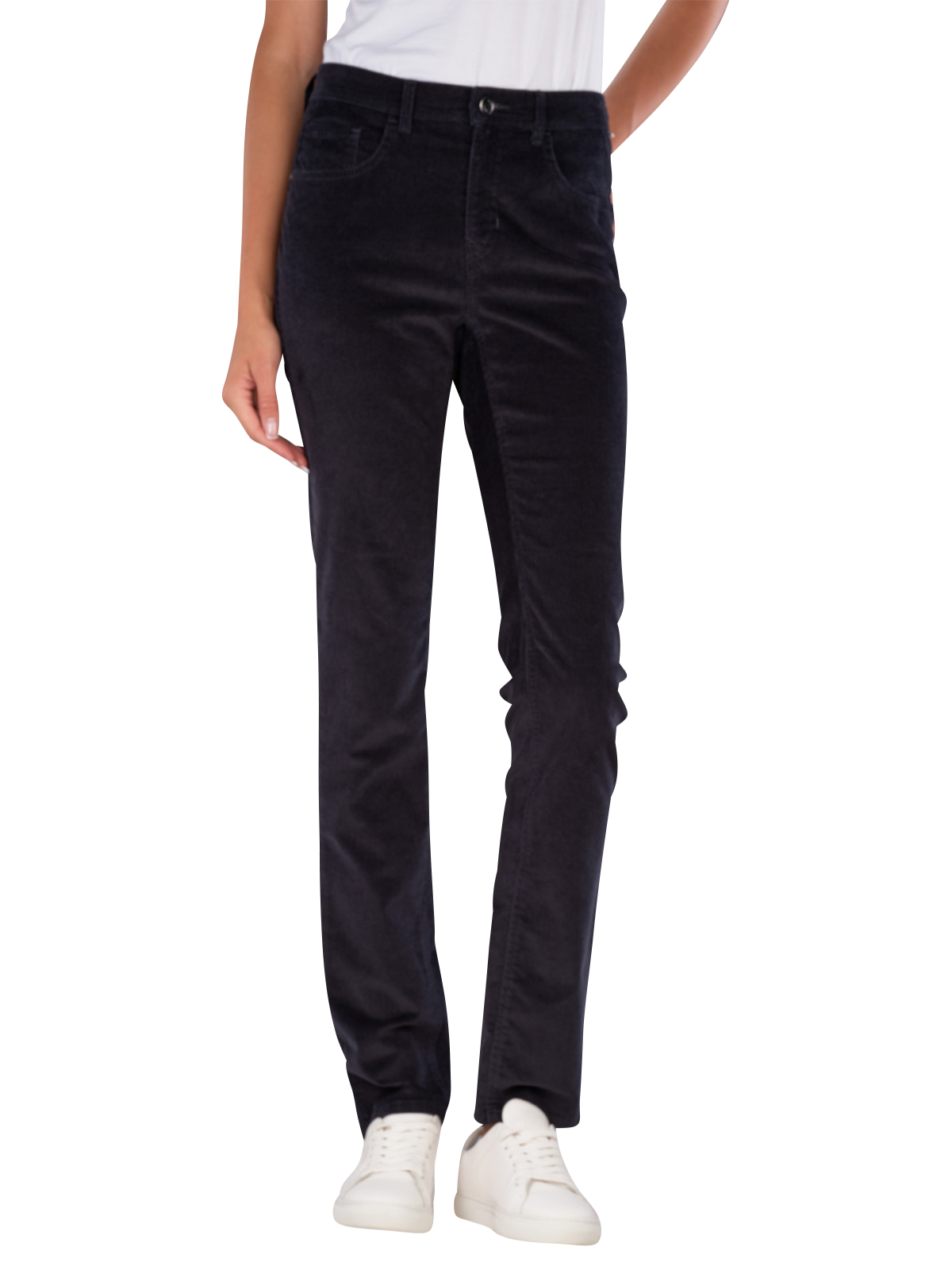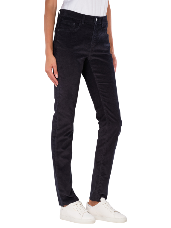 Die Brax Mary 5-Pocket Pants Slim Straight Fit in Dunkelblau bietet eine gerade Passform mit hohem Bund. Sie sind aus einem bequemen Materialmix mit Stretchanteil gefertigt, was Bewegungsfreiheit gewährleistet. Die Five-Pocket-Design ermöglicht praktischen Stauraum. Diese Hose eignet sich für verschiedene Anlässe und lässt sich vielseitig kombinieren. Pflegeleicht im Schonwaschgang bei 30°C, bleibt sie auch nach mehreren Wäschen in Form.