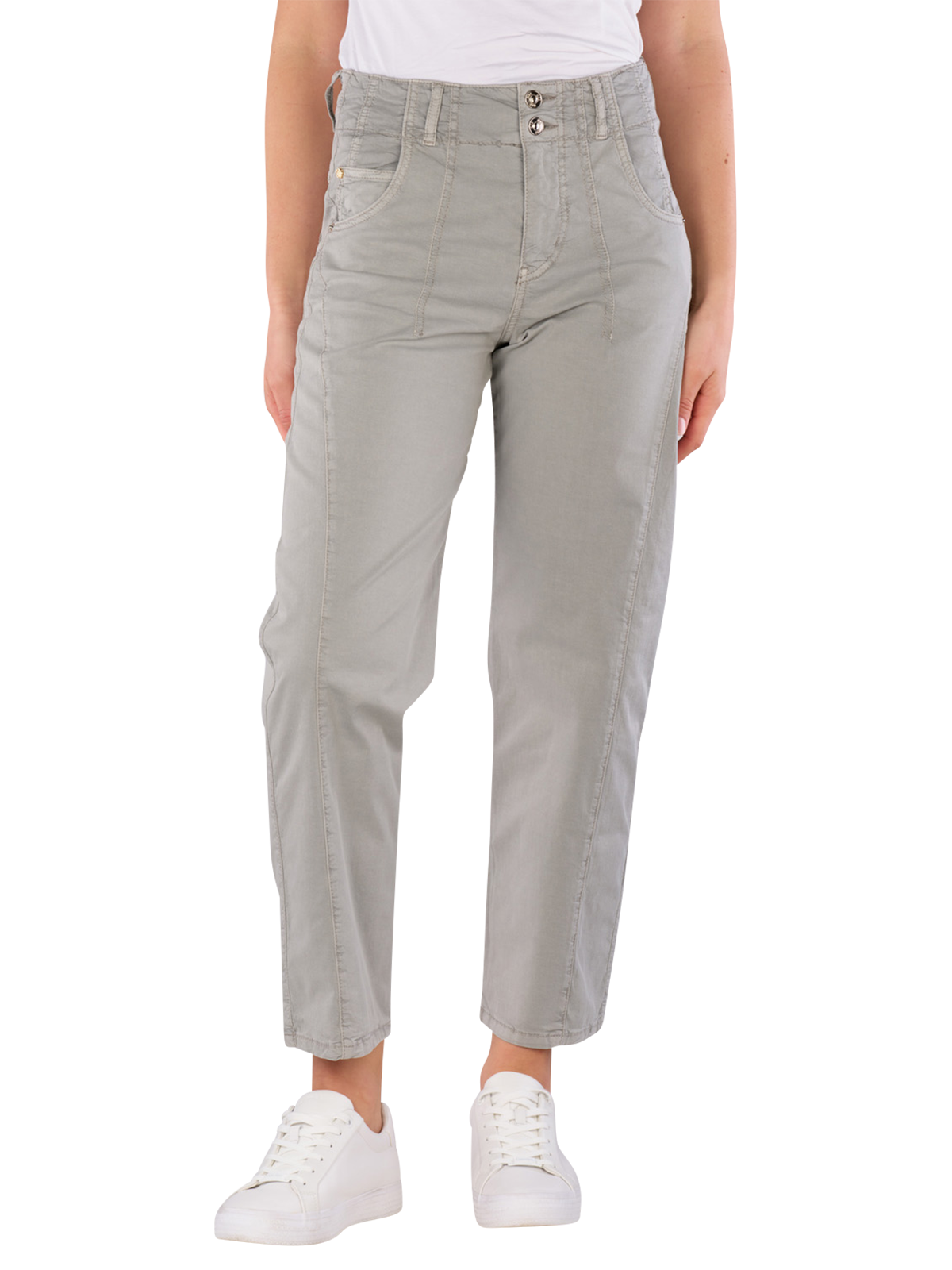 Entdecken Sie die Mac Balloon Chino im Relaxed Fit in einem stilvollen Dust Grey. Diese modische Hose überzeugt mit ihrem geraden Beinausschnitt und dem hohen Bund, der optimalen Komfort bietet. Der dünne, elastische Gabardine-Stoff sorgt für eine angenehme Passform, während der Five-Pocket-Stil und der Reissverschluss für praktische Details sorgen. Ideal für den Alltag und schick zugleich – pflegeleicht und umweltschonend durch BLUE PLANET. 97% Baumwolle und 3% Elasthan garantieren Flexibilität.