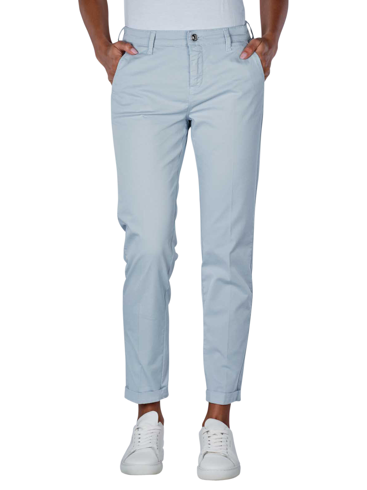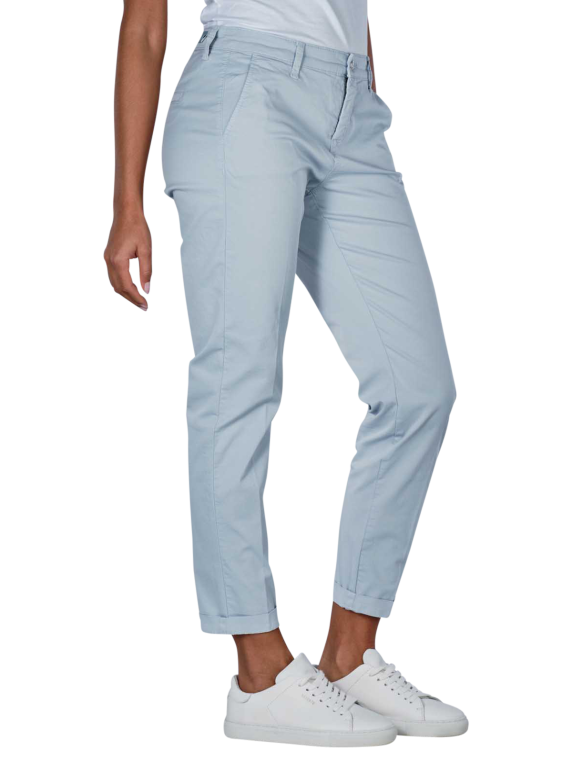 Die Mac Chino Turn Up Slim Fit in Ice Blue ist die ideale Hose für die modebewusste Frau. Mit ihrem engen Beinausschnitt und mittlerem Bund betont sie die weibliche Silhouette. Die mittelblaue Chino besteht aus einem dünnen Stoff mit Stretchanteil und bietet einen hohen Tragekomfort. Ihr Cropped- und Ankle-Design macht sie vielseitig kombinierbar. Pflegeleicht bei 30°C im Schonwaschgang, besteht sie aus 97% Baumwolle und 3% Elasthan.