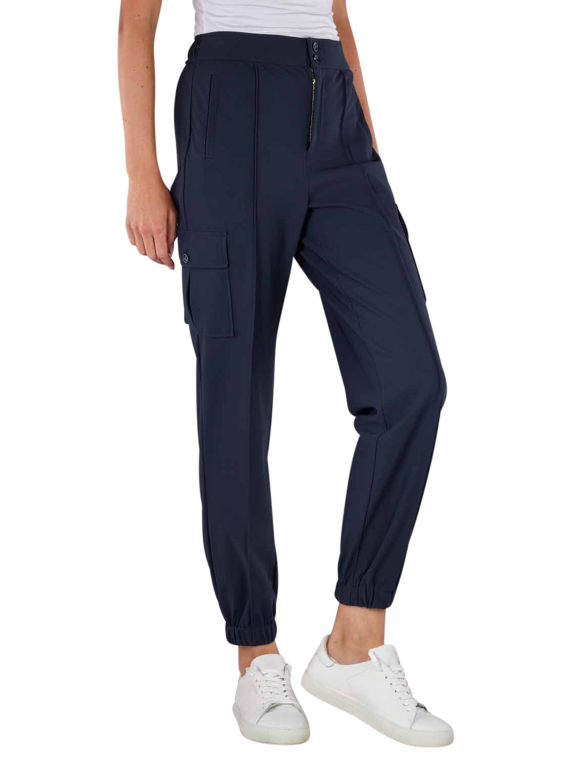 Die Mos Mosh Antina Izzy Pant Cargo in der Farbe Salute Navy überzeugt mit ihrem modernen Design und hoher Funktionalität. Diese dunkelblaue Damenhose bietet einen hohen Bund und eine eng anliegende Beinform. Die Tapered Fit Passform und der Stretchanteil sorgen für ausgezeichneten Tragekomfort. Hergestellt aus 77% Polyamid und 23% Elasthan, ist sie robust und pflegeleicht. Der praktische Reissverschluss und der Spezialschonwaschgang bei 30 Grad runden das Gesamtbild ab.