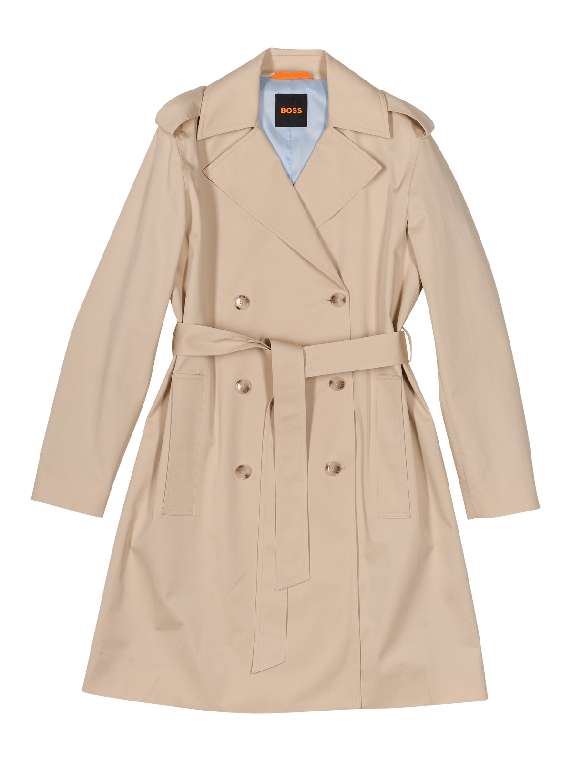 Entdecken Sie den eleganten Boss Orange Cotrench Coat in einem zeitlosen Beige, ideal für fashionbewusste Frauen. Dieser doppelt geknöpfte Mantel bietet eine perfekte Kombination aus stilvollem Design und hochwertigem Material – gefertigt aus 98% Baumwolle und 2% Elasthan für optimalen Tragekomfort. Der schlichte Schnitt ohne Kapuze macht ihn vielseitig einsetzbar und perfekt für jede Jahreszeit. Beachten Sie bitte die Pflegehinweise: Nicht waschen und nicht bleichen für eine langanhaltende Qualität. Ein Must-Have für jede Garderobe!