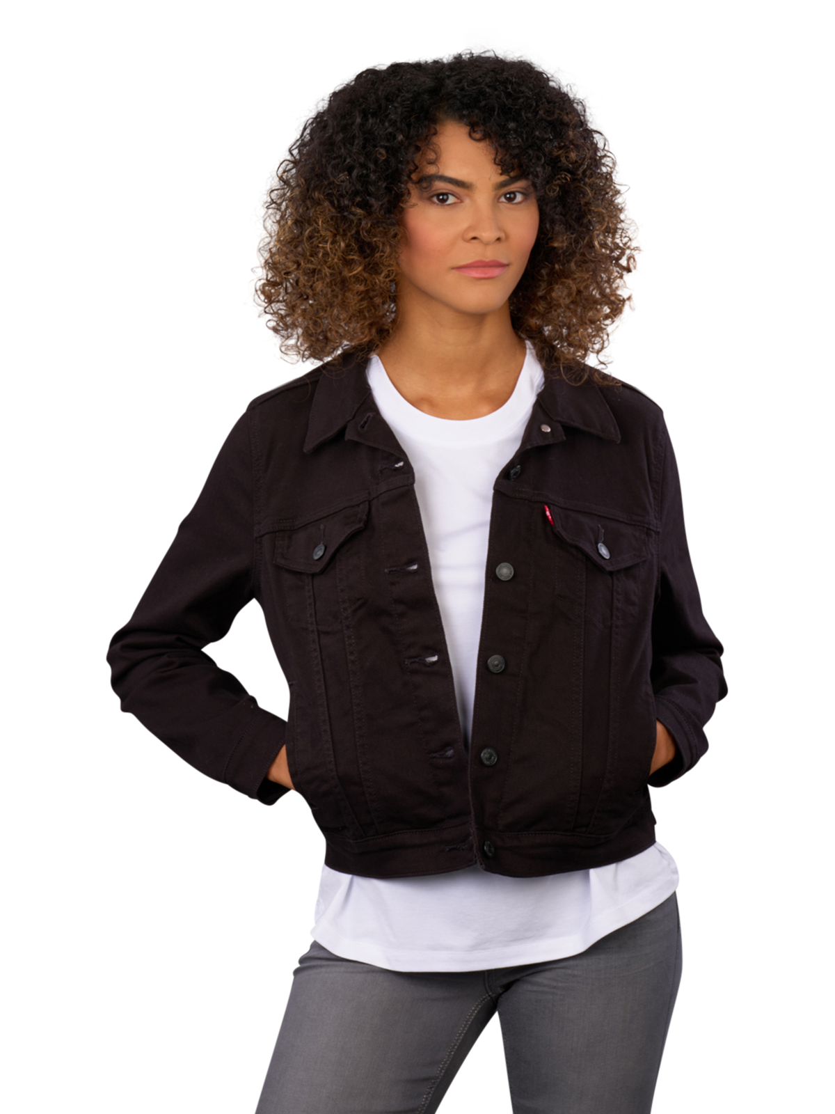 Als echten Klassiker unter den Damenjacken kann man diese coole Jeansjacke in Black and Black von Levi's betrachten. Aus 97 % Baumwolle kombiniert mit 3 % Elasthan, überzeugt die leichte Casual-Jacke mit tollem Tragegefühl. Sie hat keine Kapuze, ist aber mit zwei knöpfbaren Brusttaschen ausgestattet. Als charakteristische Details erweisen sich die Knöpfe mit Markeninschrift sowie das dezente Levi's-Logo in Rot-Weiss.