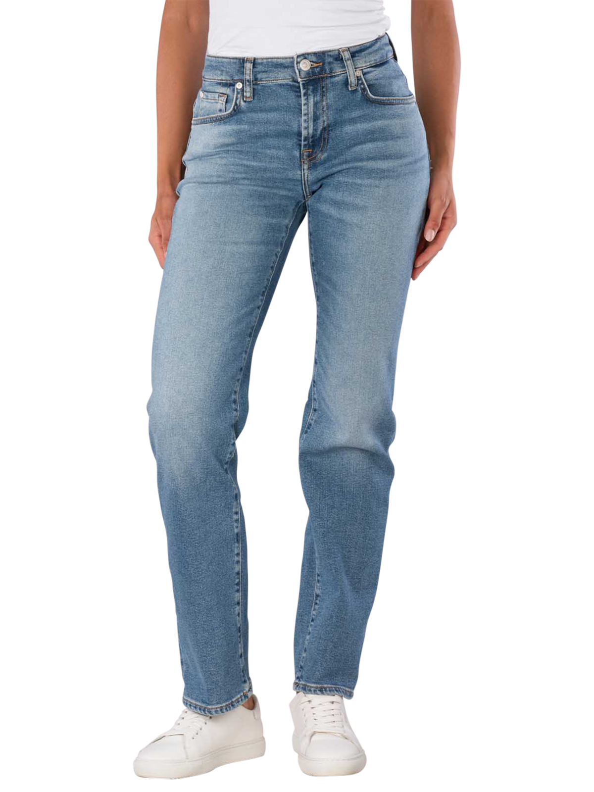 Entdecken Sie die 7 For All Mankind Calie Jeans in trendigem Mid Blue! Diese Damenjeans überzeugt mit einem geraden Beinausschnitt und mittelhohem Bund, der für optimalen Komfort sorgt. Der hochwertige Stoffmix mit Stretchanteil gewährleistet eine perfekte Passform und Bewegungsfreiheit. Die helle Waschung verleiht den Jeans einen modernen Look, während die fünf praktischen Taschen sowohl Stil als auch Funktionalität bieten. Ideale Wahl für stilbewusste Frauen! Pflegeleicht und bei 30°C im Normalwaschgang waschbar.