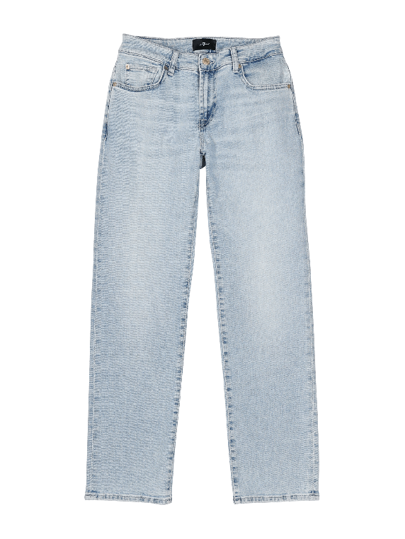 Die 7 For All Mankind Calie Jeans Straight Fit in Hellblau bietet eine gerade Passform mit mittlerer Bundhöhe. Sie verfügt über einen klassischen Five-Pocket-Stil und einen Reissverschluss. Der Stretchanteil sorgt für Bewegungsfreiheit und Komfort. Diese Jeans ist für den normalen Waschgang bei 30°C geeignet und bietet eine helle Waschung, die vielseitig kombinierbar ist.