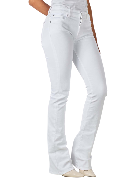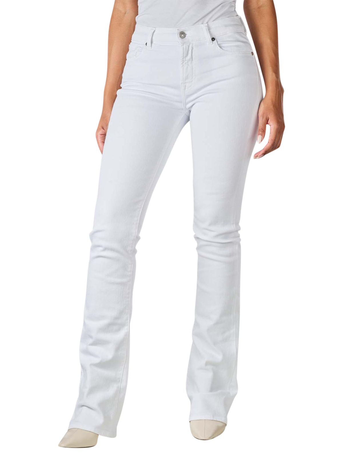 Die 7 For All Mankind Jeans in Bootcut Optic in der Farbe White hat eine mittlere Leibhöhe und schmale Beine. Inspiriert vom Flair der 70er Jahre, zieht die stylische Five-Pocket-Jeans alle Blicke auf sich. Die Bootcut Jeans ist aus hochwertiger Baumwolle mit geringem Stretchanteil überzeugt mit einem komfortablen Tragegefühl sowie einer unkomplizierten Reinigung bei 30 C im Normalwaschgang in der Maschine.