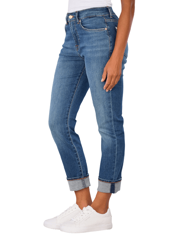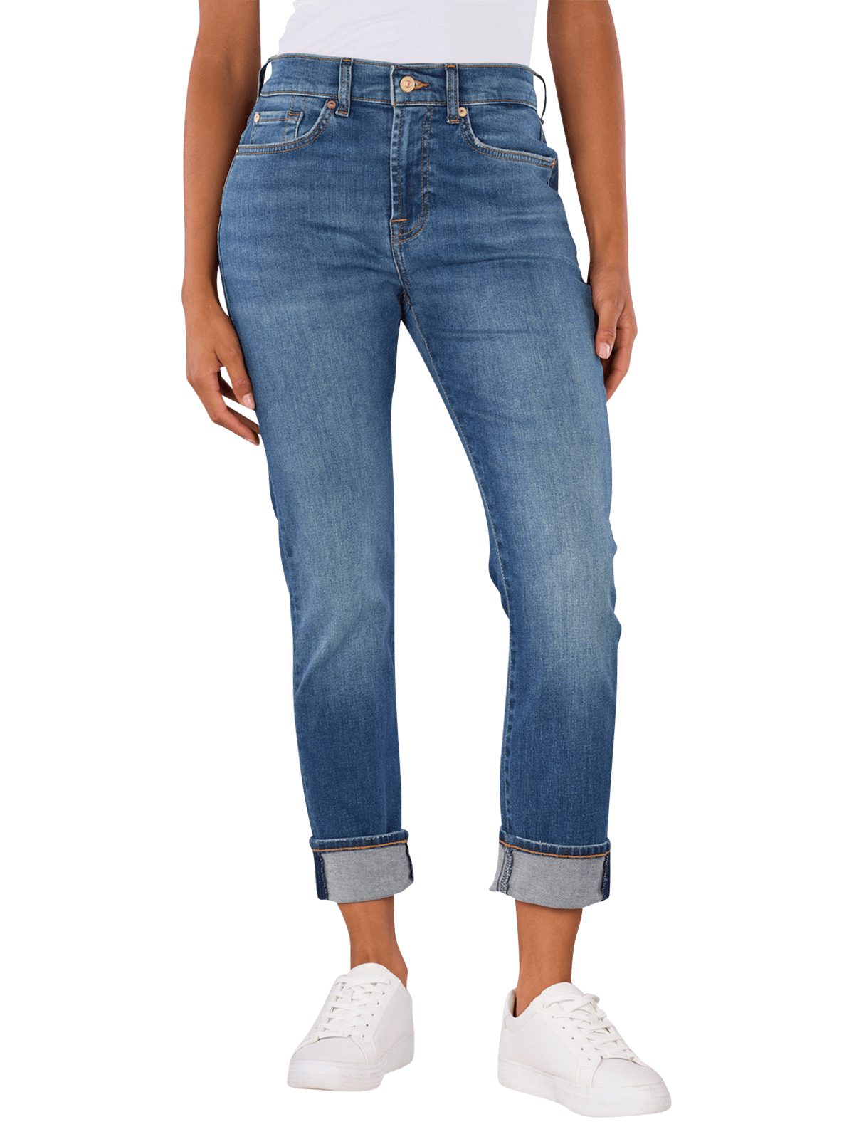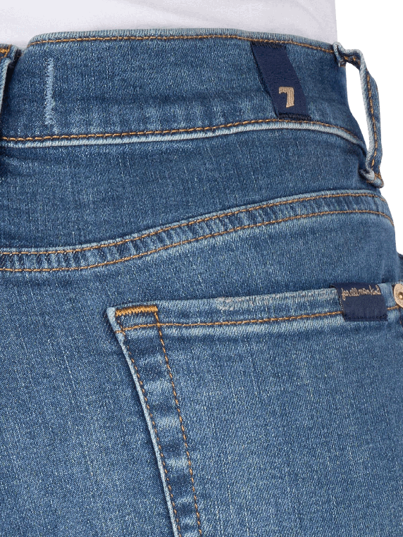 Die 7 For All Mankind Relaxed Skinny Jeans bieten einen Slim Fit mit mittlerer Bundhöhe und einem engen, geraden Beinausschnitt. Die Jeans sind in einem mittleren Blau gehalten und verfügen über einen praktischen Reissverschluss. Mit einem Stretchanteil bieten sie hohen Tragekomfort und Bewegungsfreiheit. Ideal für den Alltag oder besondere Anlässe, lassen sie sich vielseitig kombinieren und sind pflegeleicht bei 30°C im Normalwaschgang.