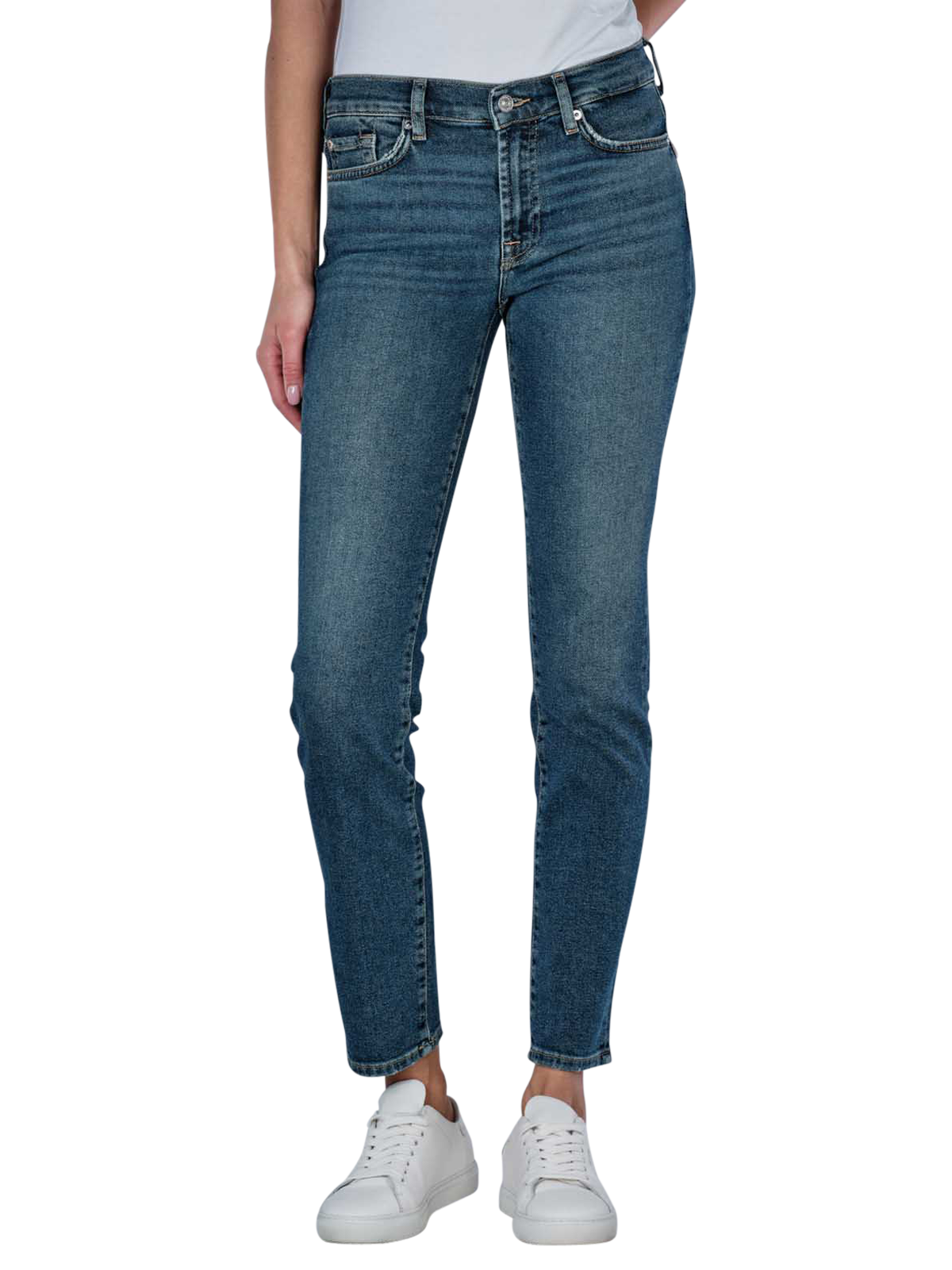 Die 7 For All Mankind Roxanne Jeans für Frauen bieten einen modernen Slim Fit mit geradem Beinausschnitt und mittelblauer Waschung. Der mittelhohe Bund sorgt für bequemen Sitz, während der Stretchanteil Bewegungsfreiheit gewährleistet. Diese Jeans sind im klassischen Five-Pocket-Stil gehalten und schliessen mit einem Reissverschluss. Gefertigt aus einer Baumwollmischung mit Modal, Elastomultiester und Elasthan, sind sie bei 30°C waschbar und perfekt für den Alltag geeignet.