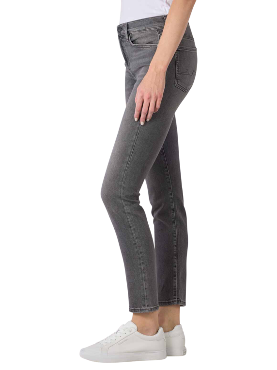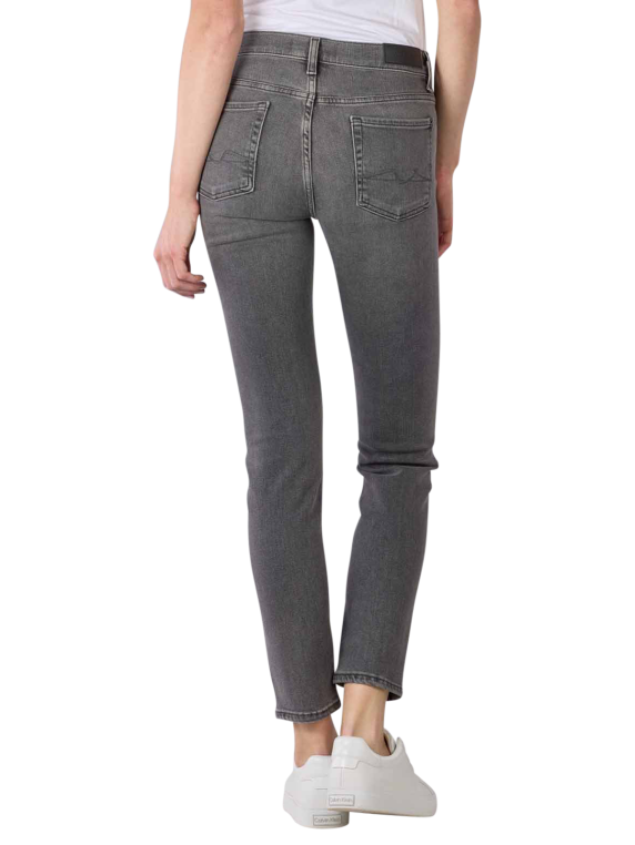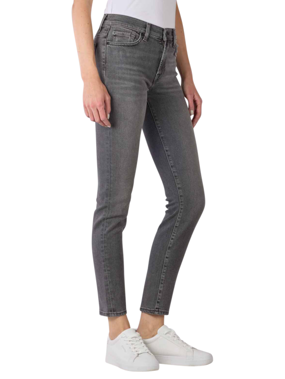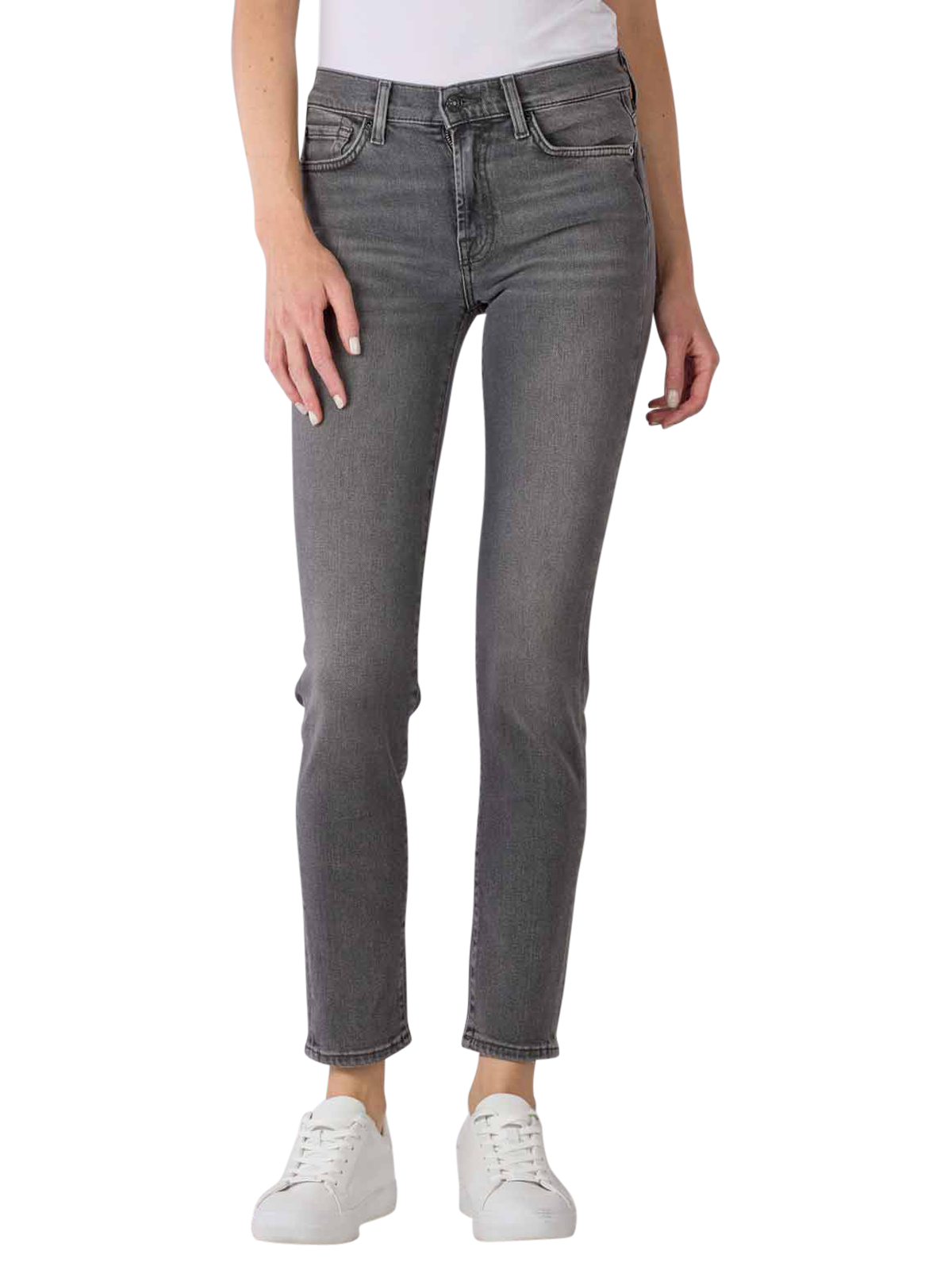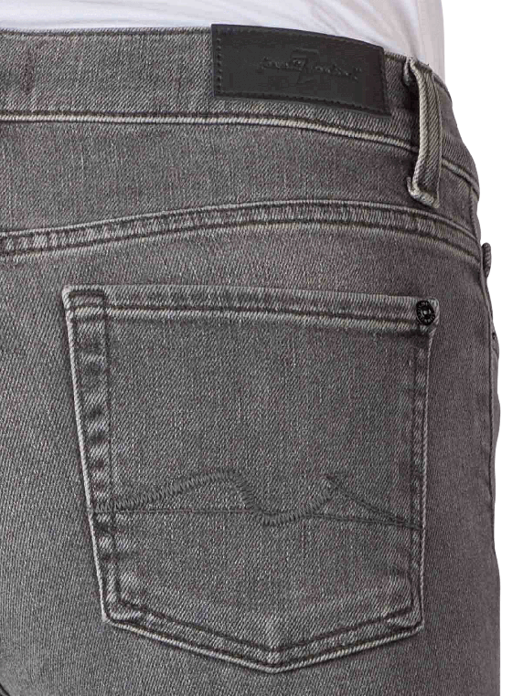 Die 7 For All Mankind Roxanne Luxe Jeans sitzt körpernah. Sie hat einen schlanken geraden Schnitt und ist 7/8 lang. Gefertigt aus 79 % Baumwolle, 14 % Lyocell, 5 % Elastomultiester und 2 % Elasthan macht die 5-Pocket-Jeans mit Reissverschluss und Knopf jede Bewegung mit und kann normal in der Maschine gewaschen werden. Um den verwaschenen Look zu betonen, sind auch einige der Nähte grau gehalten, während das Label am Bund schwarz ist.