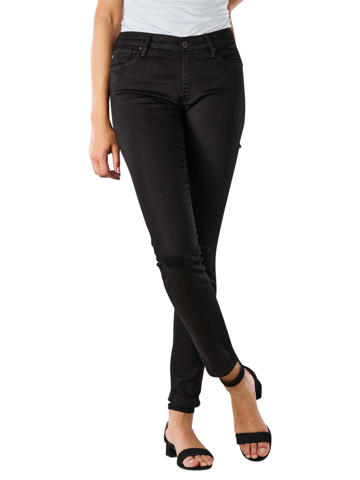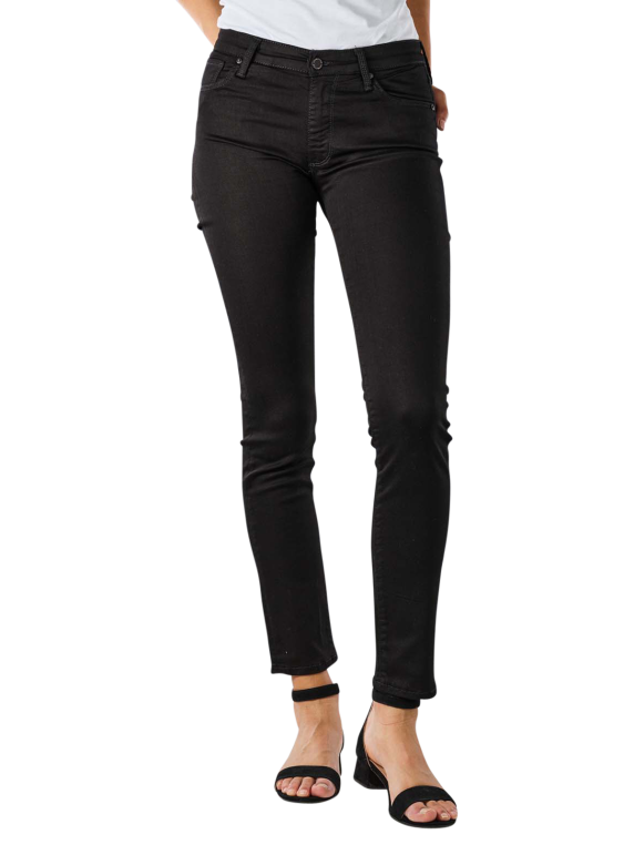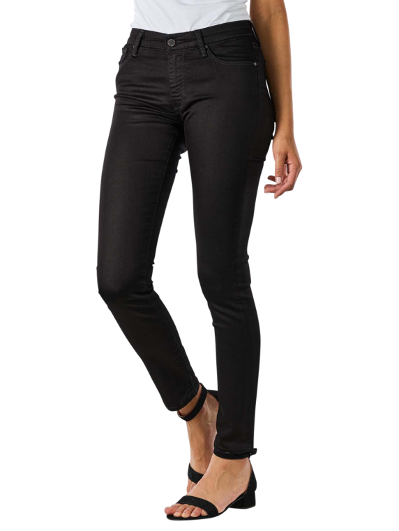 Die schwarze qualitativ hochwertige figurbetonte AG Jeans verfügt über einen angenehmen Stretchanteil. Die Jeans im Five-Pocket-Stil besitzt eine lässige mittlere Bundhöhe. Wie von einer attraktiven Skinny gewöhnt, sitzt der Stoff eng und doch angenehm an den Oberschenkeln. Die AG Jeans ist besonders bequem und ist dank dem Stretchanteil bewegungsfreudig. Ein Klassiker, wo alles mitmacht.
