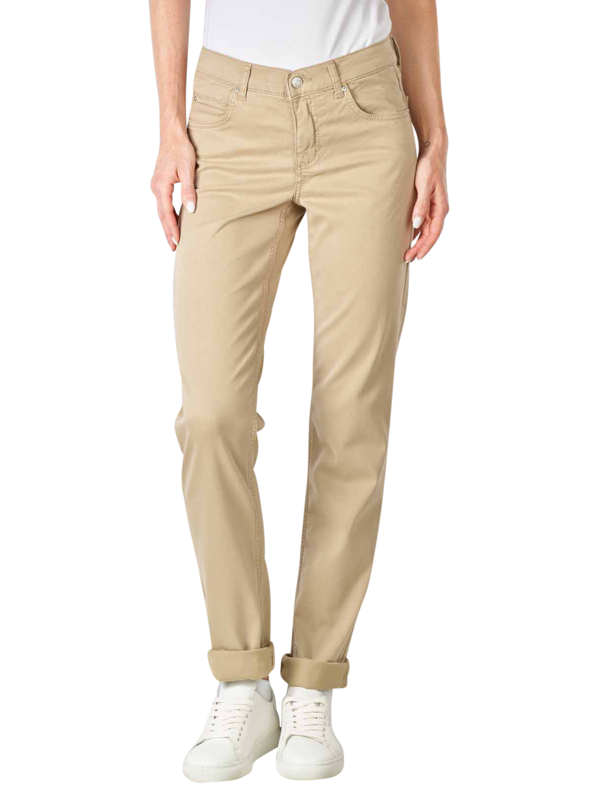 Eine Damenhose für die kühleren Tage ist die Angels Winter Cotton Cici Pant. Das Five-Pocket-Modell in der Farbe Cappuccino besitzt einen hohen Bund, gerade Oberschenkel sowie gerade Beinausschnitte. Der dickere Stoff der Straight Fit-Hose besteht aus einem hochwertigen Materialmix: Dafür werden 40 % Lyocell, 28 % Modal und 17 % Baumwolle mit formgebenden Materialien kombiniert. Hierfür werden ein Anteil von 12 % Elastomultiester und 3 % Elasthan eingesetzt.
