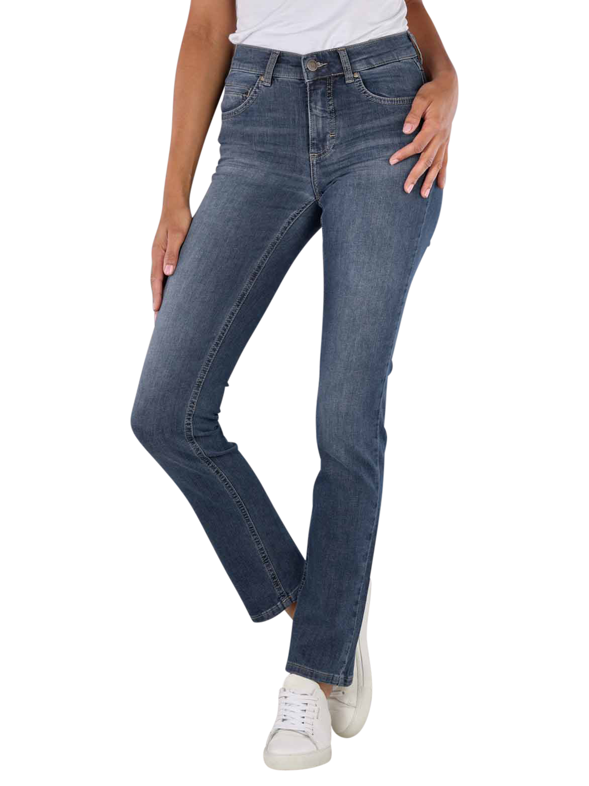 Die Angels Cici Jeans Straight Fit in Greyish Blue ist eine bequeme Damenjeans mit geradem Beinausschnitt und hoher Bundhöhe. Die mittelblaue Farbe und die mittlere Waschung verleihen ihr einen zeitlosen Look. Hergestellt aus einer Baumwollmischung mit Stretchanteil bietet sie optimalen Tragekomfort. Die Five-Pocket-Jeans verfügt über einen Reissverschluss und kann im Schonwaschgang bei 30°C gewaschen werden. Perfekt für den Alltag.