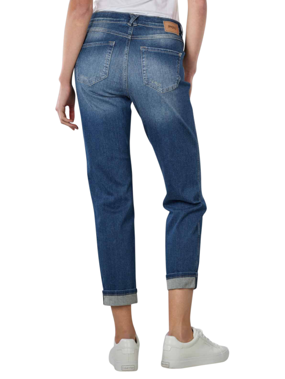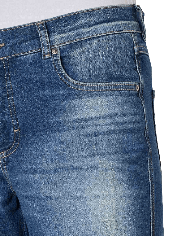 Die Hose besteht aus einem Baumwollmix und passt sich daher optimal an den Körper an. Sie wird mit einem Reissverschluss und einem Hosenknopf schnell und einfach verschlossen. Die Jeans sollte im Schonwaschgang bei 30 Grad gewaschen werden. Mässig heisses bügeln bei höchstens 150 Grad ist erlaubt, ohne dass die Hose Schäden davonträgt. Die Oberschenkle und Beinausschnitte sind gerade gewählt.