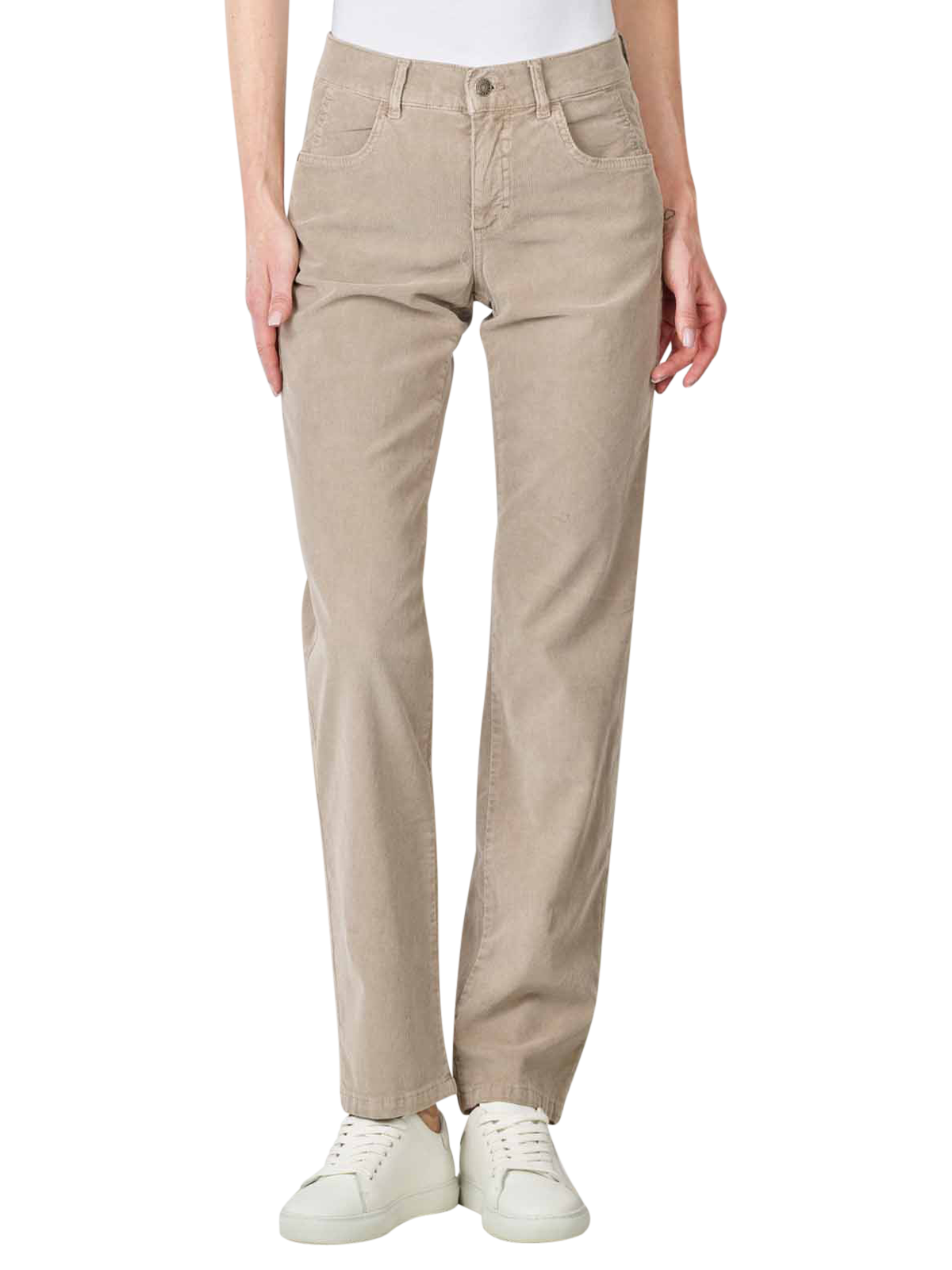 Der Angels Dolly Cord Pant Straight Fit in der Farbe Truffle Used kombiniert den klassischen 5-Pocket-Look mit einer hohen Leibhöhe und geradem Bein. Sie besteht aus einem hochwertigen Baumwoll-Mix mit Stretchanteil, der ihr eine gute Passform sowie einen hohen Tragekomfort verleiht. Waschbar bei 30 °C im Schonwaschgang und bei niedrigen Temperaturen trocknergeeignet ist die moderne Damenhose zudem einfach zu pflegen.