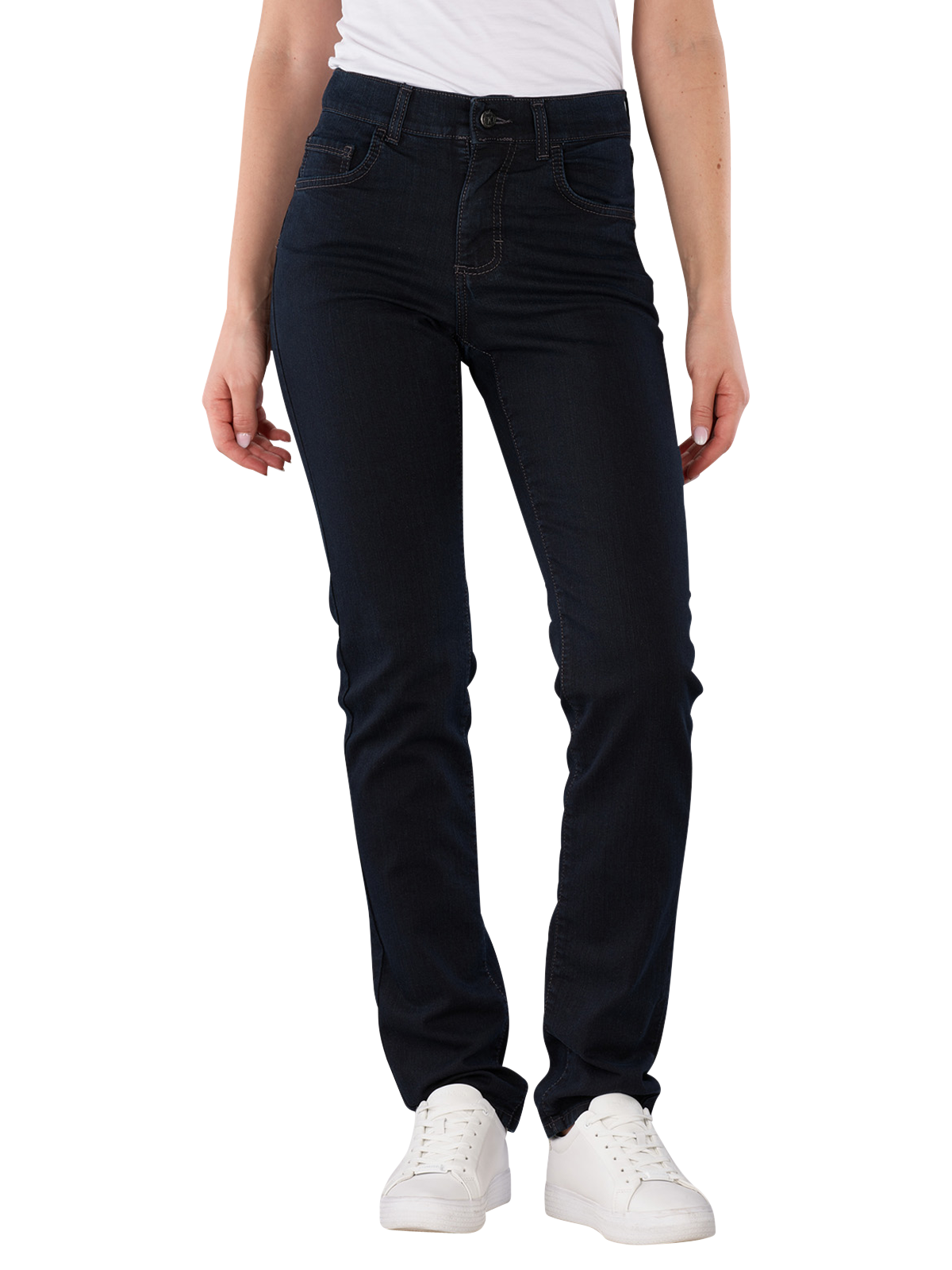 Gerade geschnittene, moderne Jeans für Damen in dunkelblau und mit leichtem Stretchanteil. Neben einem aufgenähten Logo hinten, befinden sich zudem vorne und hinten zwei aufgenähte Taschen. Grössentabelle für Angels Jeans: Grösse 34 = W26 Grösse 36 = W28 Grösse 38 = W30 Grösse 40 = W32Grösse 42 = W33Grösse 44 = W34 Grösse 46 = W36