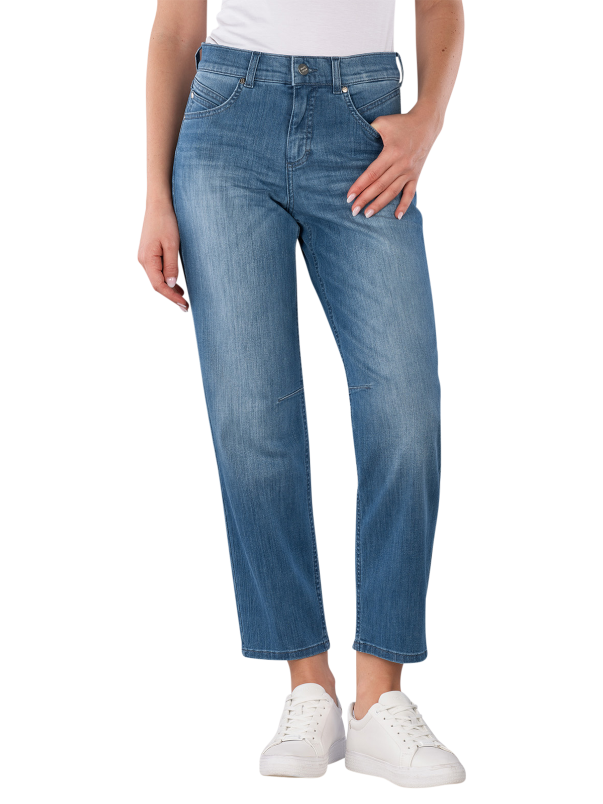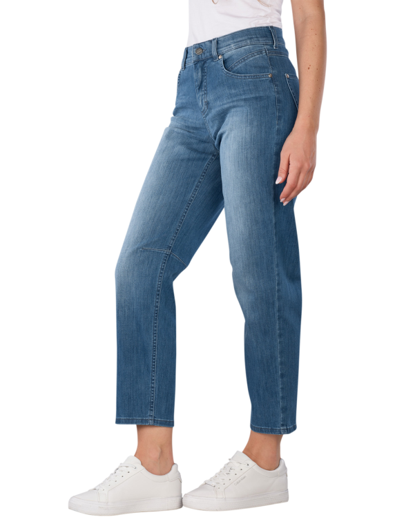 Die Angels Evy Jeans Barrel Fit West Coast Denim Light Blue Used bietet eine gerade Beinausschnitt und eine mittlere Bundhöhe. Sie ist in einem mittleren Blau gehalten und verfügt über einen praktischen Reissverschluss. Mit ihrem Barrel Fit und O-Shape Design sorgt sie für eine bequeme Passform. Der Stretchanteil ermöglicht Bewegungsfreiheit, während die Five-Pocket-Optik Funktionalität und Stil vereint. Pflegeleicht bei 30°C im Schonwaschgang.