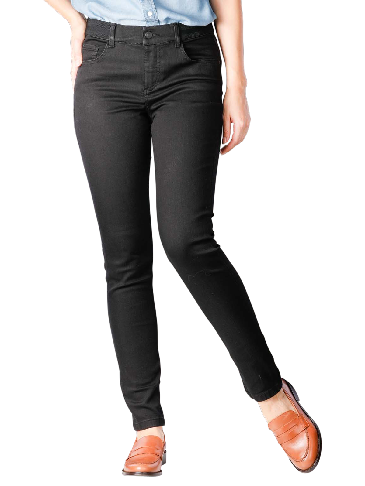 Die Angels One Size Jeans black sitzt sehr eng. Um den guten Sitz auch nach vielem Tragen und Waschen zu gewährleisten, besteht die dunkle Jeans aus einer Baumwoll-Kunstfaser Mischung. So schmiegt sich die Skinny Fit Hose perfekt an den Körper an, streckt optisch und formt einen schönen Po.