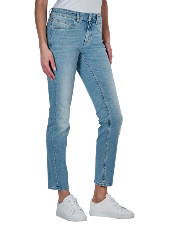 Die Boss Orange Jackie Jeans ist perfekt für Frauen, die eine moderne Slim Fit Passform bevorzugen. Diese hellblauen Jeans zeichnen sich durch einen engen, geraden Beinausschnitt und eine mittlere Bundhöhe aus. Aus leicht dehnbarem Material mit 94% Baumwolle, bieten sie Komfort und Flexibilität. Die klassische Five-Pocket-Optik und der Reissverschluss machen sie alltagstauglich. Mit heller Waschung lassen sie sich vielseitig kombinieren. Pflegehinweis: Schonwaschgang bei 30°C, nicht bleichen.