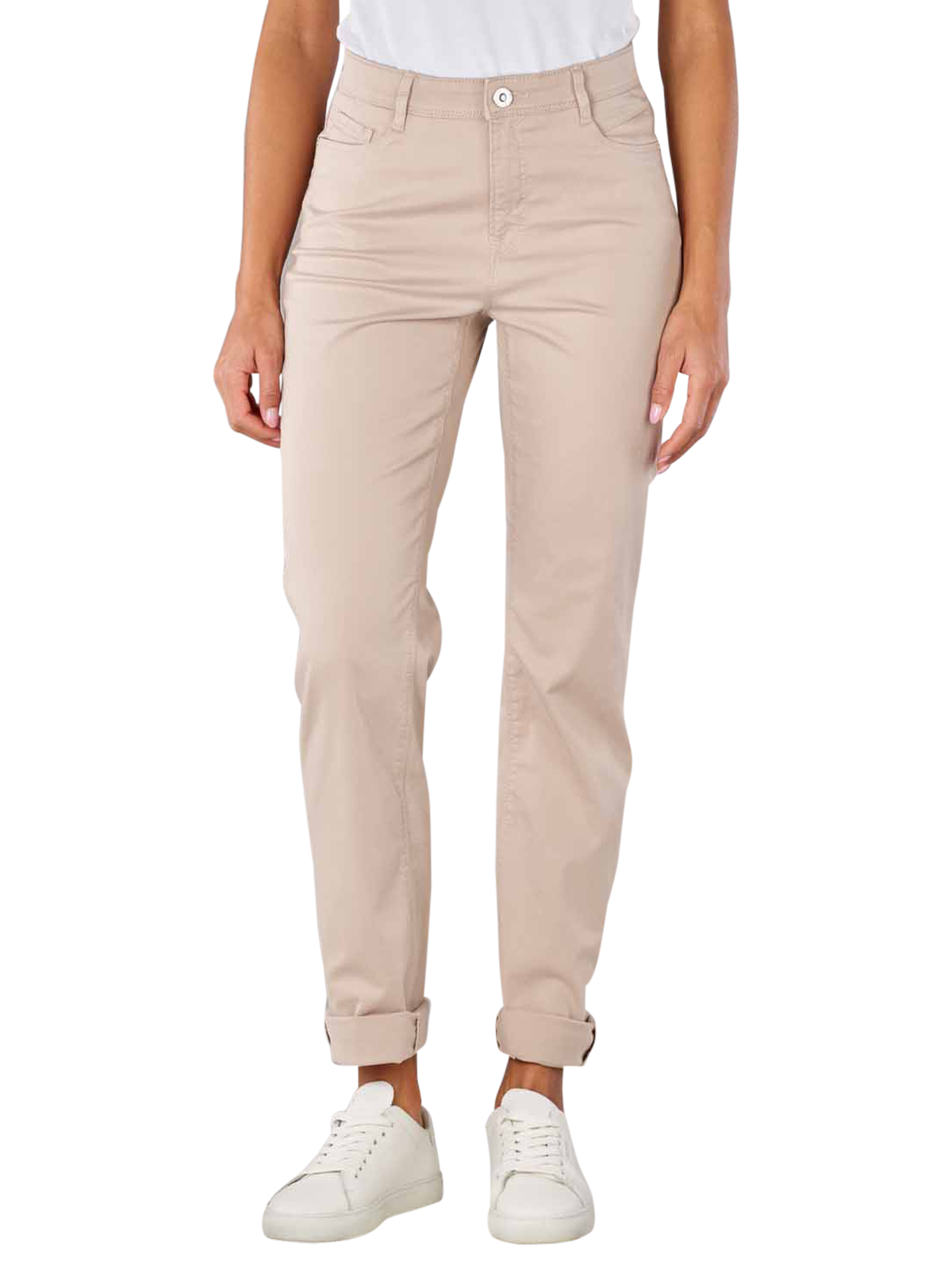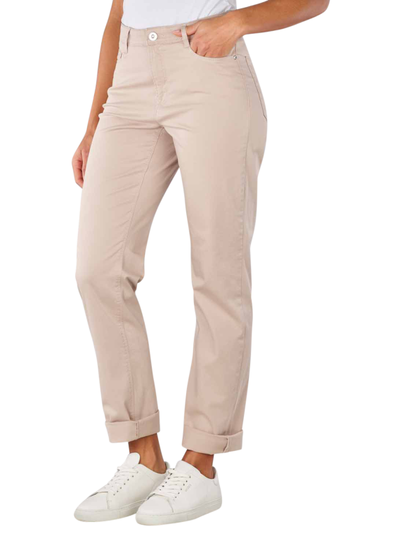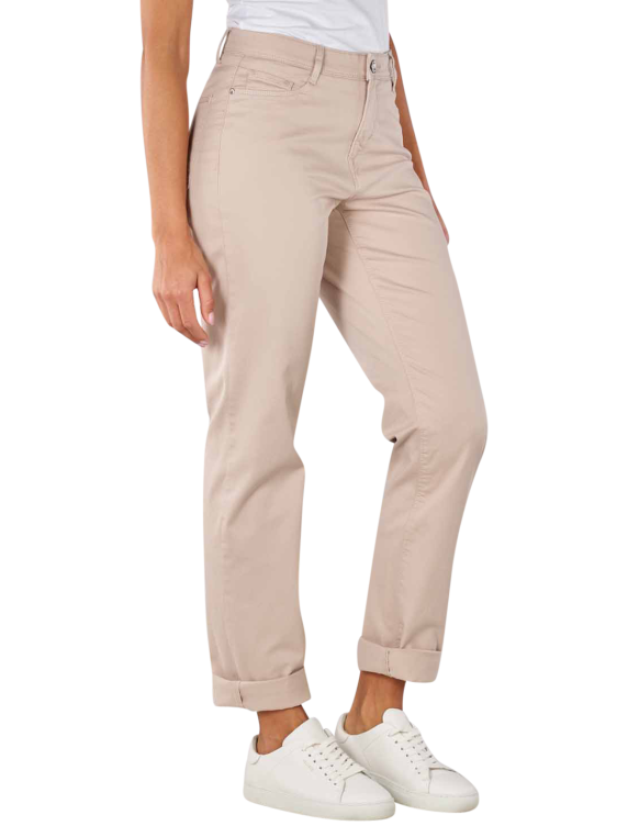 Die Brax Carola Pant im Straight Fit ist in der Farbe Sand gehalten und kombiniert den traditionellen 5-Pocket-Look mit einem hohen Bund samt verdecktem Zip-Fly und Knopf mit geraden, Figur umschmeichelnden Beinen. Hergestellt aus einem dünnen Baumwollstoff mit Stretchanteil, fühlt sich die Damenhose komfortabel auf der Haut an und bietet ein bequemes Tragegefühl. Waschbar bei 30 °C im Schonwaschgang ist die Hose ausserdem pflegeleicht.