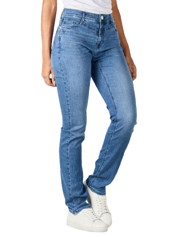 Die Brax Mary Jeans Slim Straight Fit überzeugt mit bequemer Passform und Figur schmeichelndem Schnitt. Die schmale Jeans ist aus einem dünnem Denim-Stoff gefertigt, der sich durch den Stretchanteil optimal an Taille, Hüfte und Beine anschmiegt, ohne aufzutragen. Spitz zulaufende Nähte im unteren Bauchbereich und die moderne Waschung machen die Brax Mary Jeans zu einem Modehighlight für die sportlich-elegante Frau.