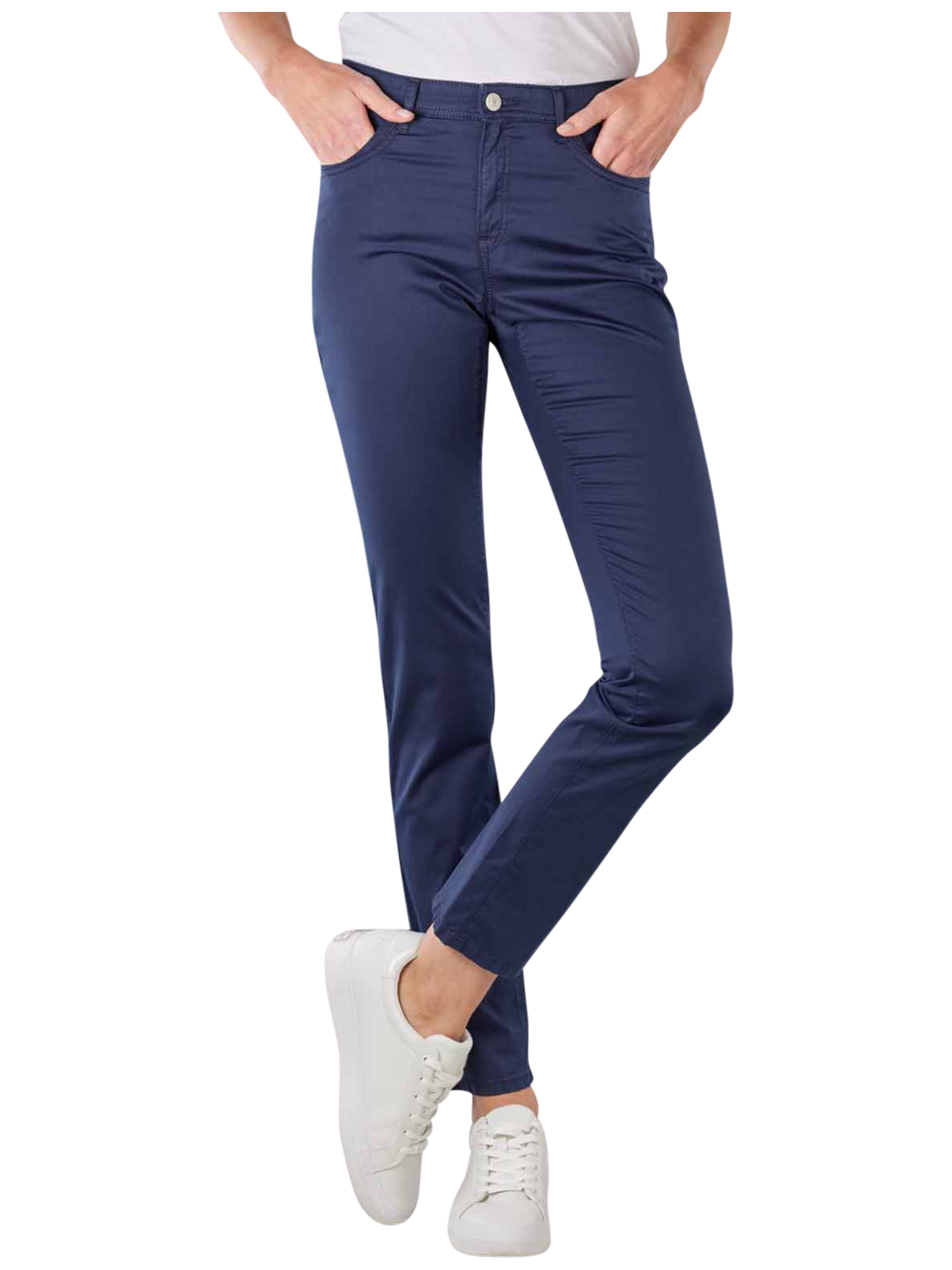 Die Hose für Damen sitzt dank des Strechtanteils bequem. Sie kann mit einem Reissverschluss und einem Hosenknopf optimal verschlossen werden. In den fünf Taschen der Hose können kleine Gegenstände, wie beispielsweise der Haustürschlüssel, verstaut werden. Die Hose kann gut zu einem Casual und Business Stil kombiniert werden. Der hohe Baumwollanteil sorgt dafür, dass die Hose sehr hautfreundlich ist.